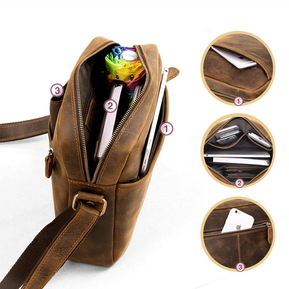Design: BADASS BROWN LEATHER MEN'S SLING BAG 10 inches ONE SHOULDER BACKPACK CHEST BAG Small SLING BAG FOR MEN