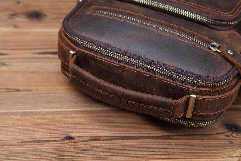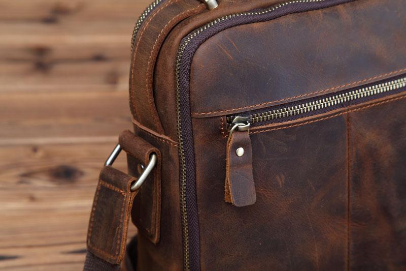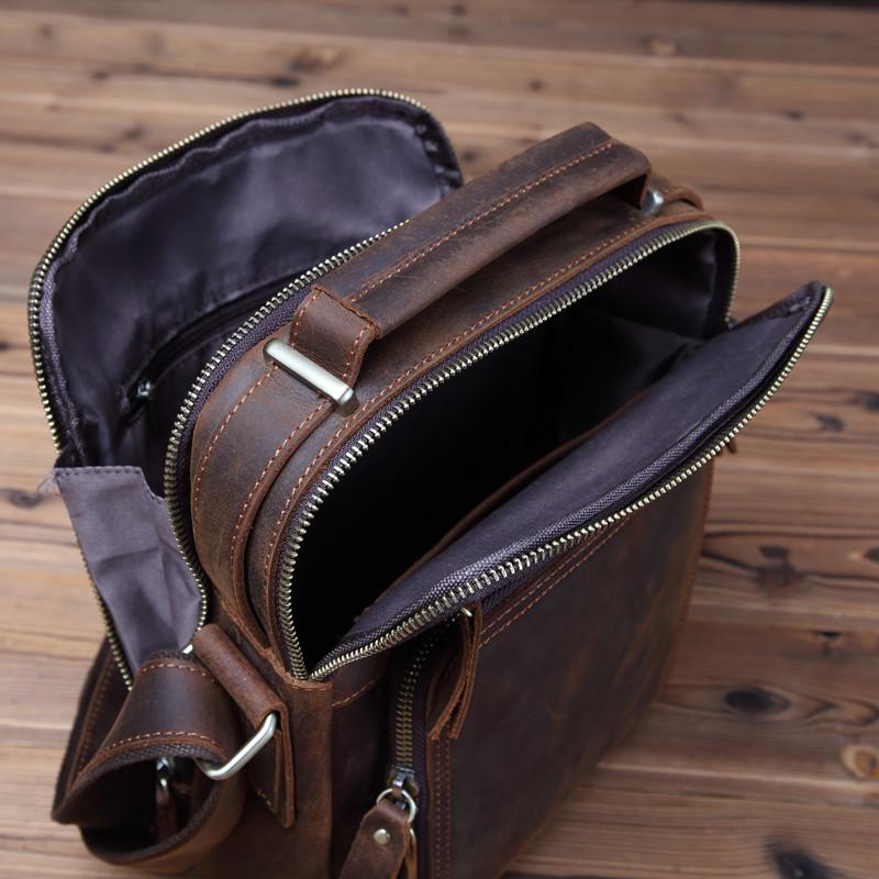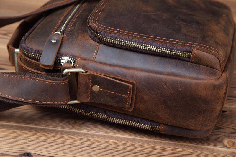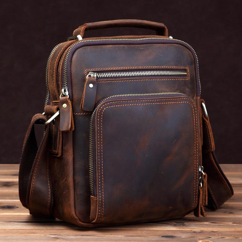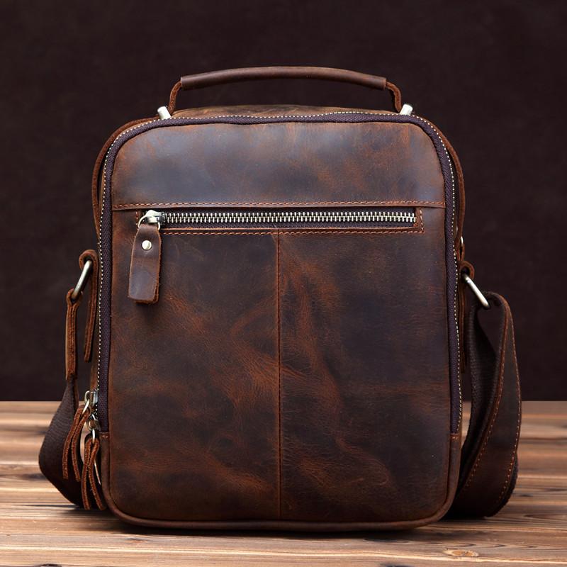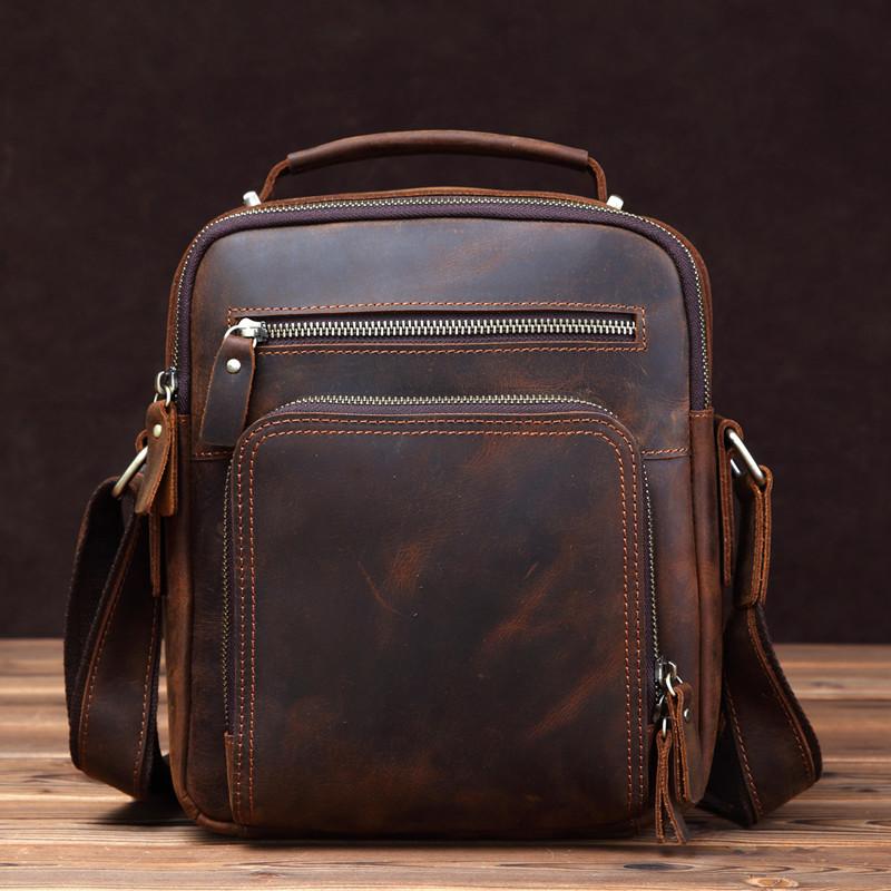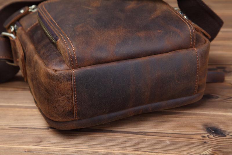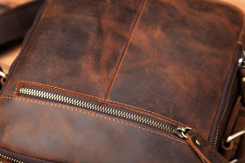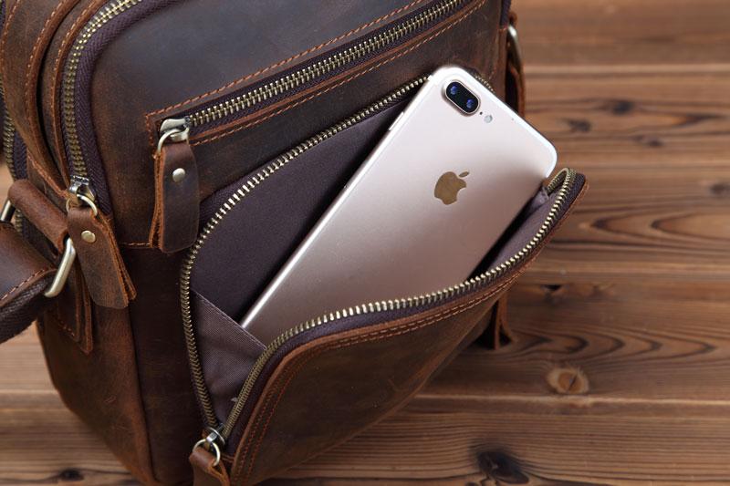 Design: Badass Brown Leather Messenger Bag Men's 10 inches Dark Brown Side Bag Mini Phone Bag Courier Bag For MenOverview: