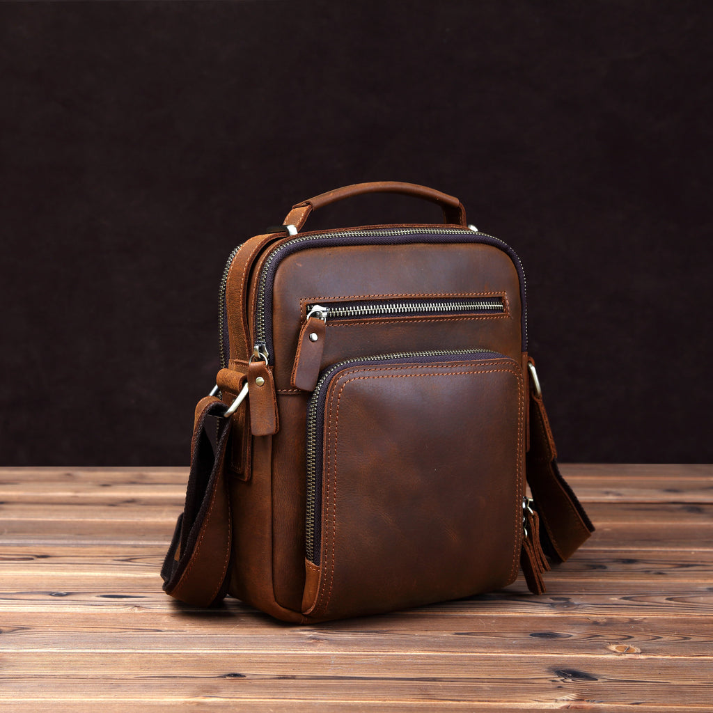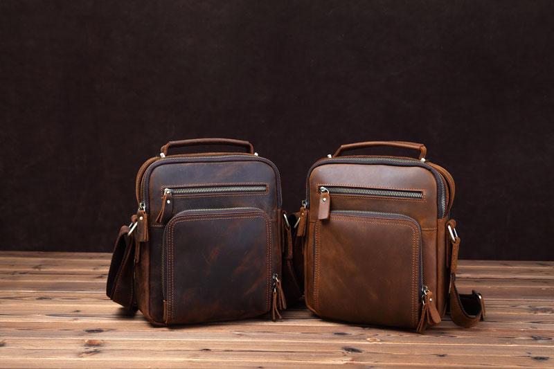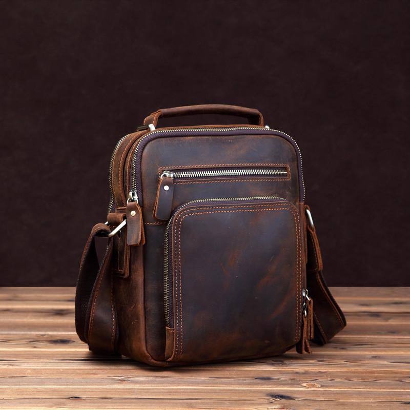 Design: Badass Brown Leather Messenger Bag Men's 10 inches Dark Brown Side Bag Mini Phone Bag Courier Bag For Men