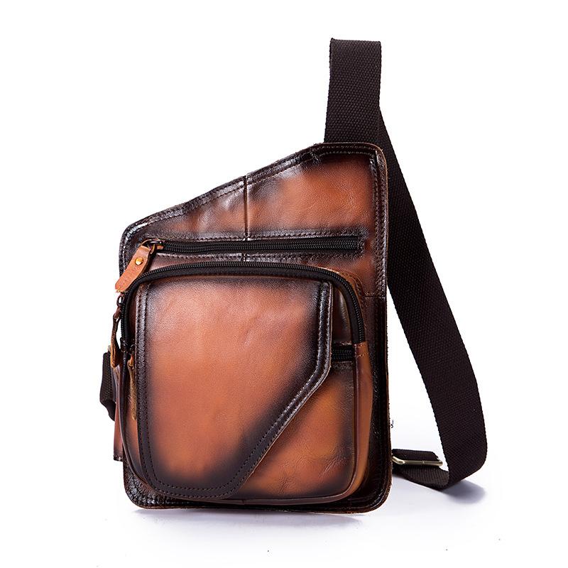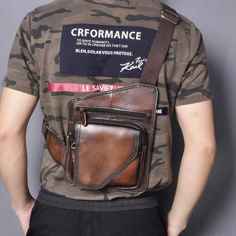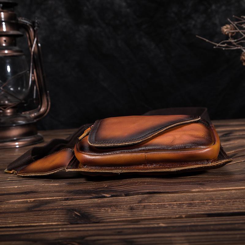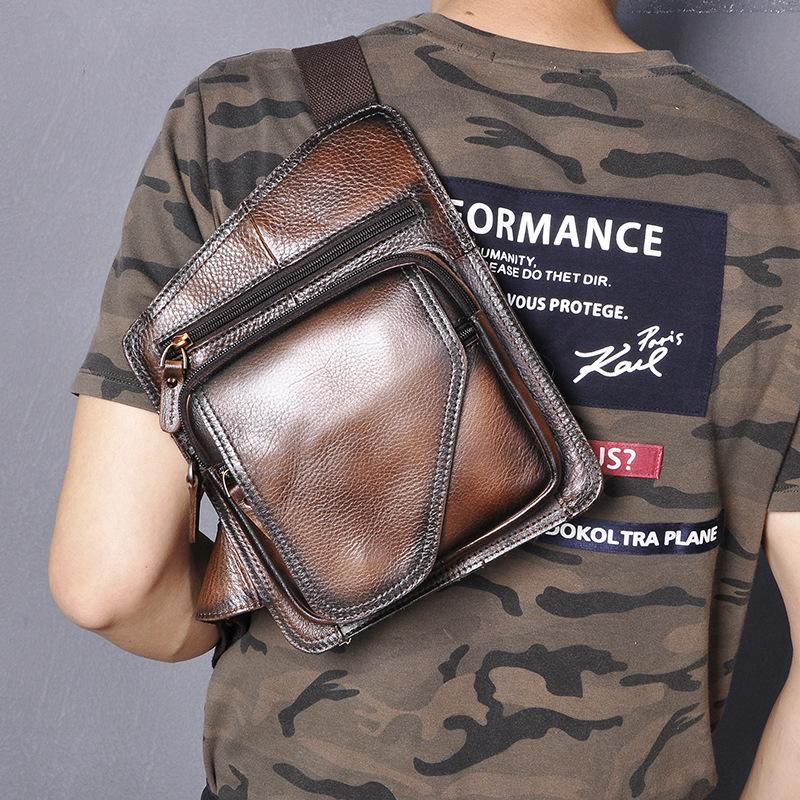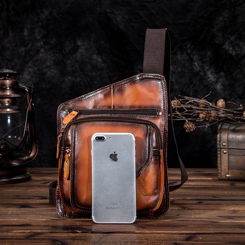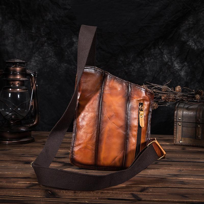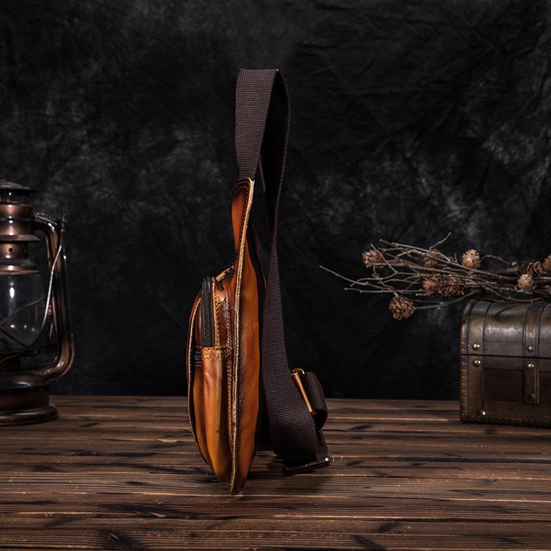 Design: Badass Leather Sling Bag Men's Small Sling Pack Tan Sling Backpack Small Courier Bag For MenOverview: