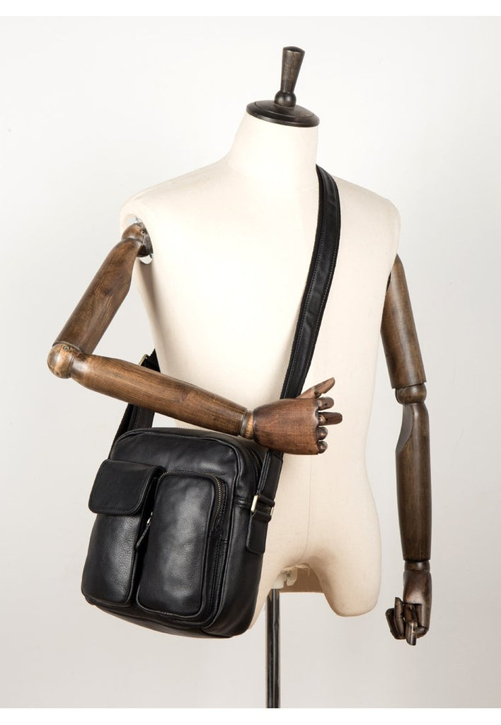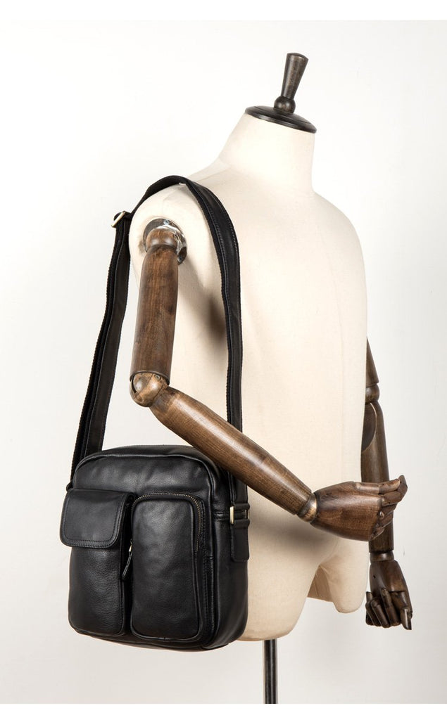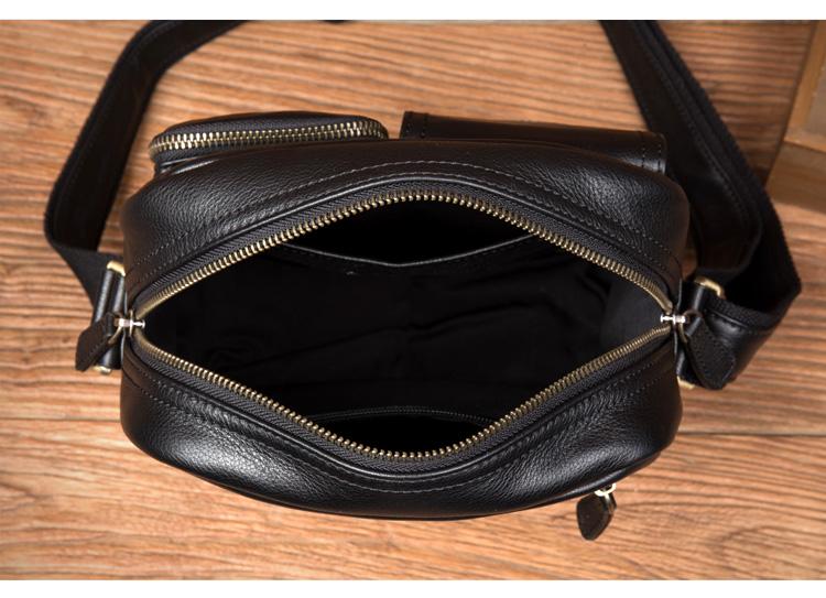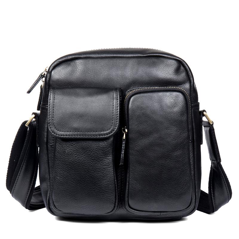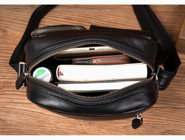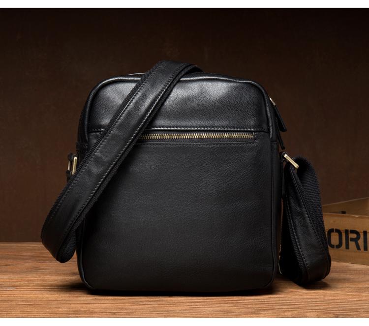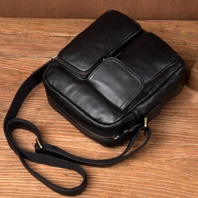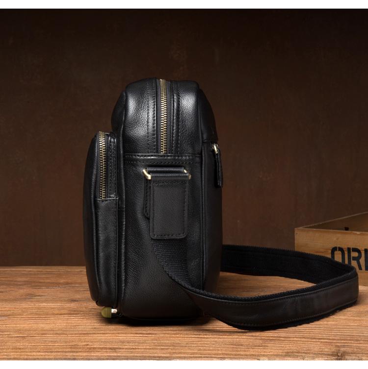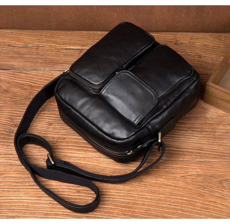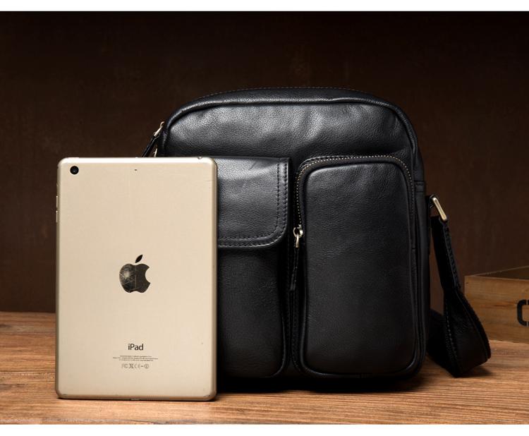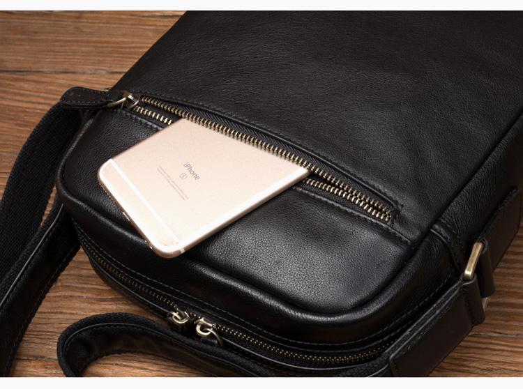 Design: Black Cool Leather 13 inches Shoulder Bag Brown Messenger Bag Computer Bag for Men