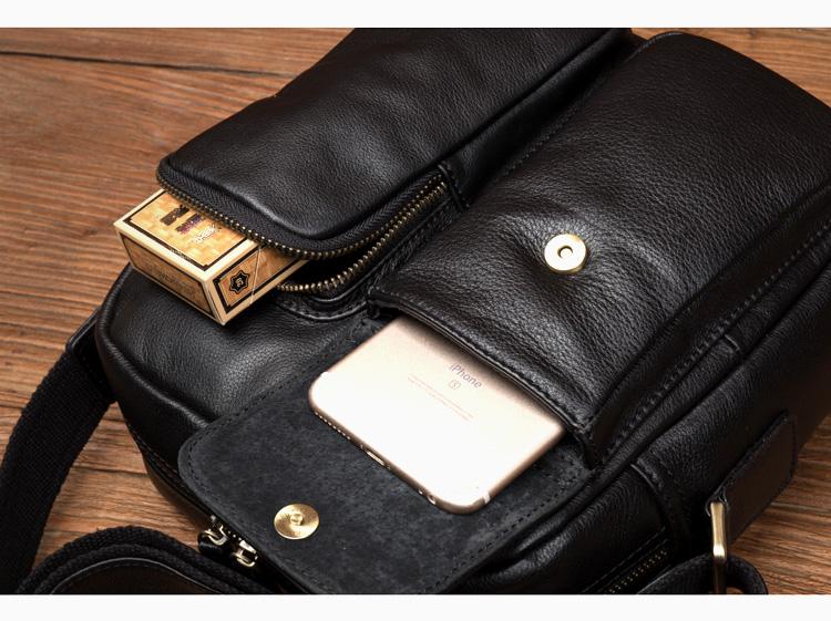 Cool Black Leather Small Courier Bags Brown Vertical Messenger Bag Postman Bag for Men