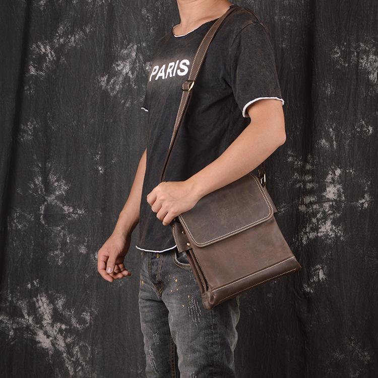 Design: Black LEATHER MEN'S Vertical Side bag Vertical MESSENGER BAG Small Courier Bag FOR MENOverview: