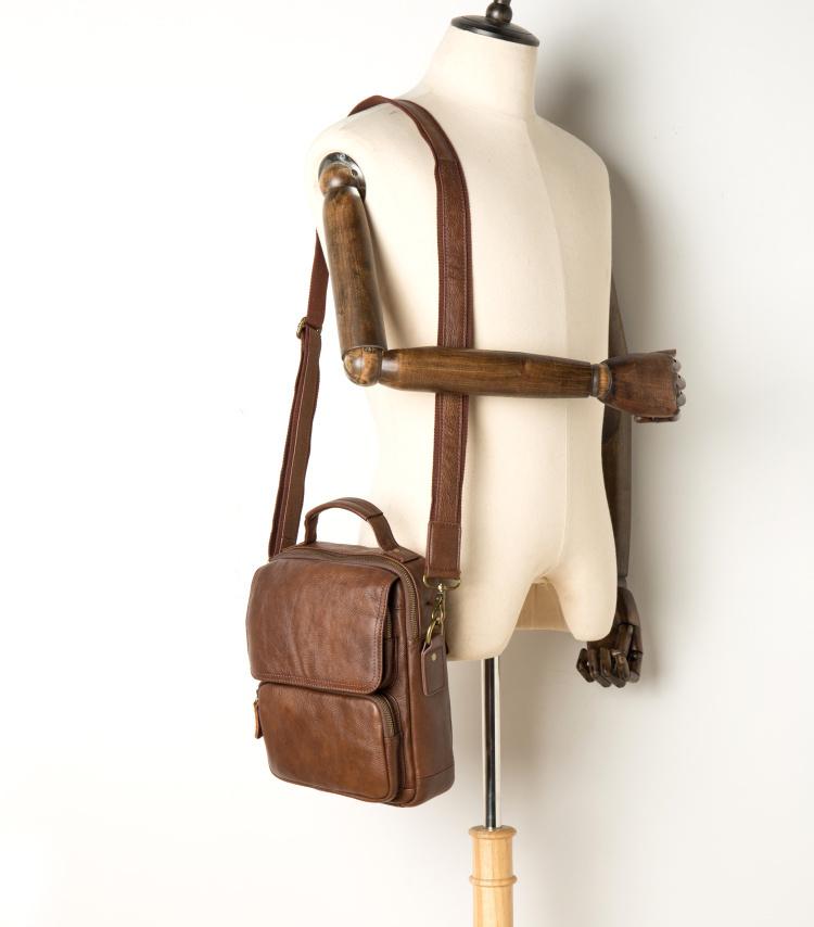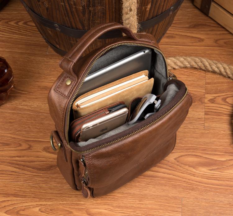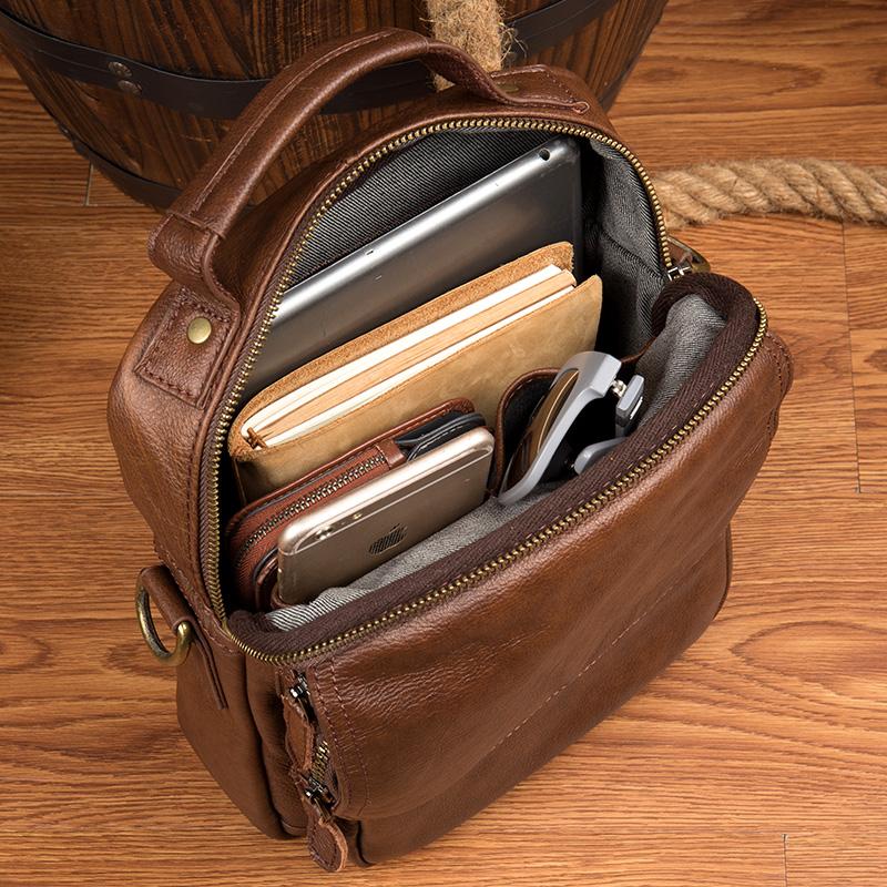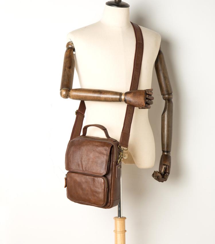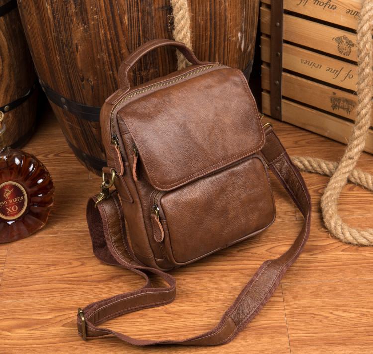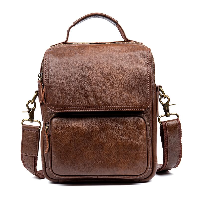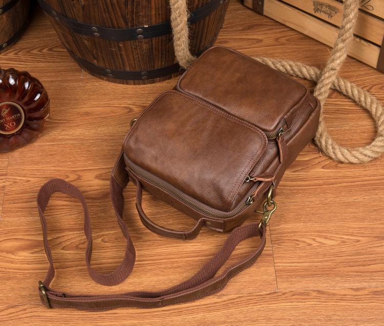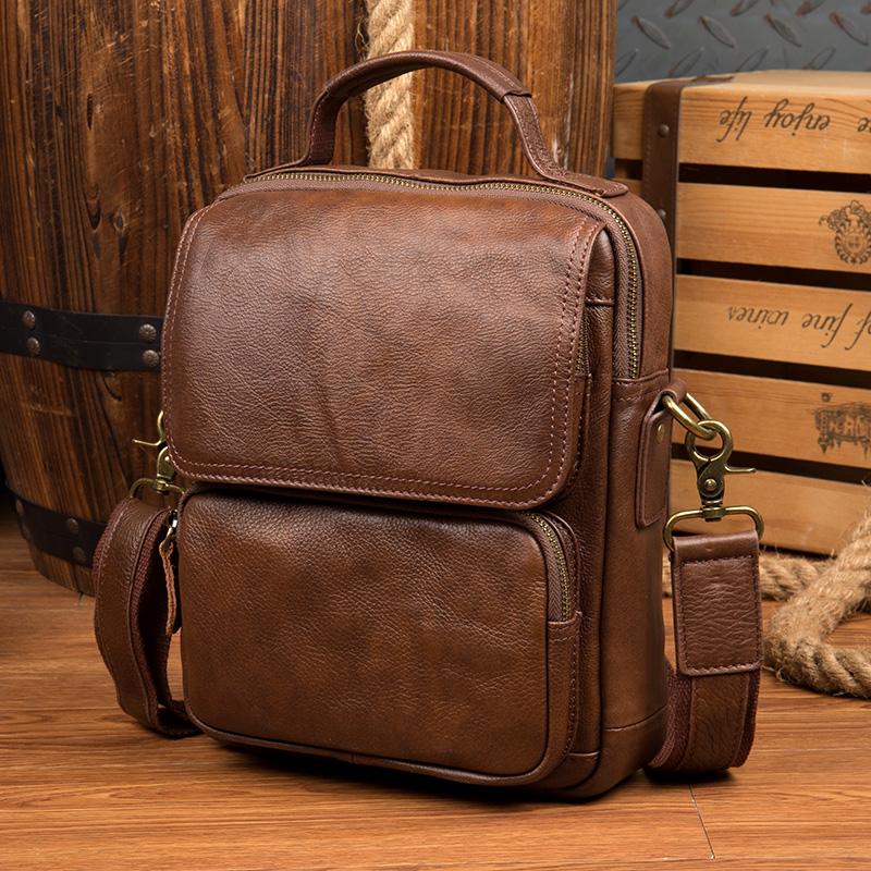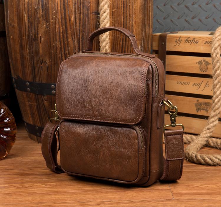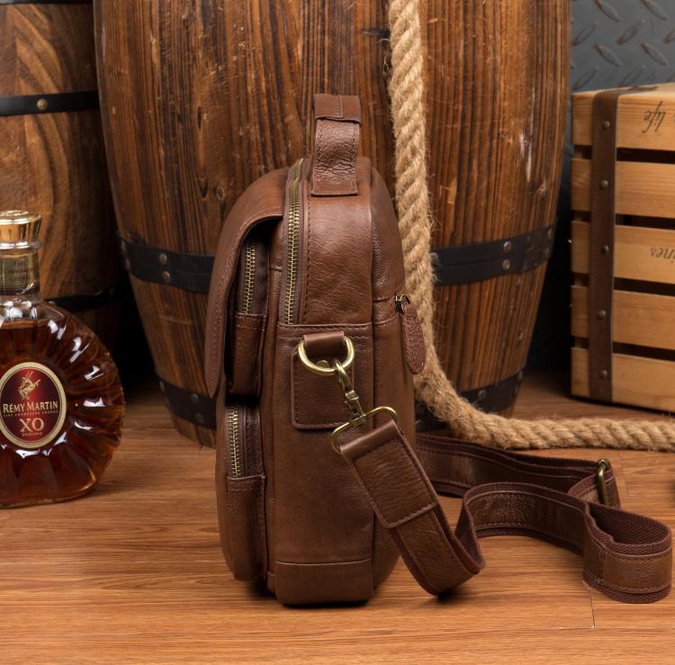 Design: Brown Cool Leather 10 inches Shoulder Bags Messenger Bag Crossbody Bag for Men