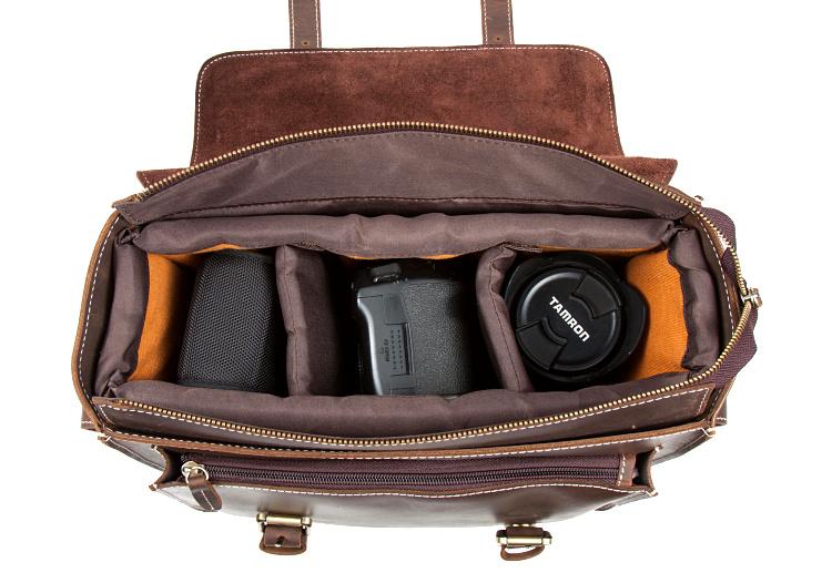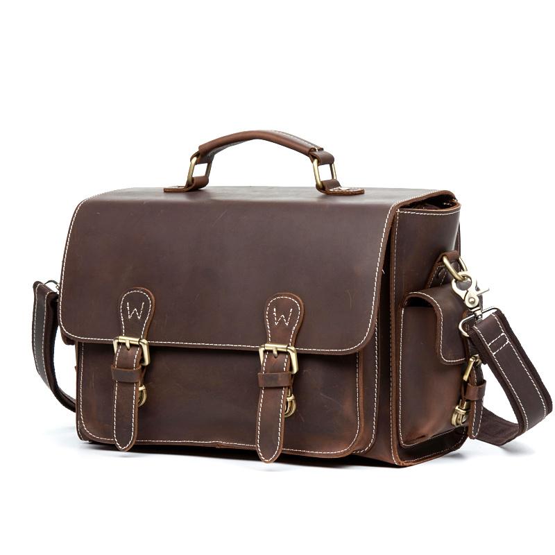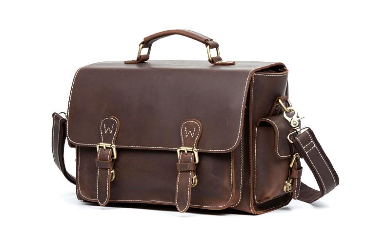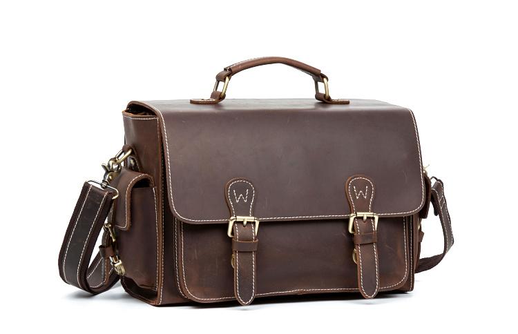 Brown Leather 13 inches SLR Camera Side Bag Messenger Bags HandBag for Men