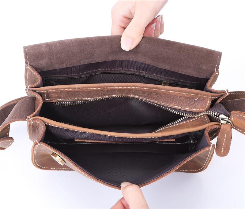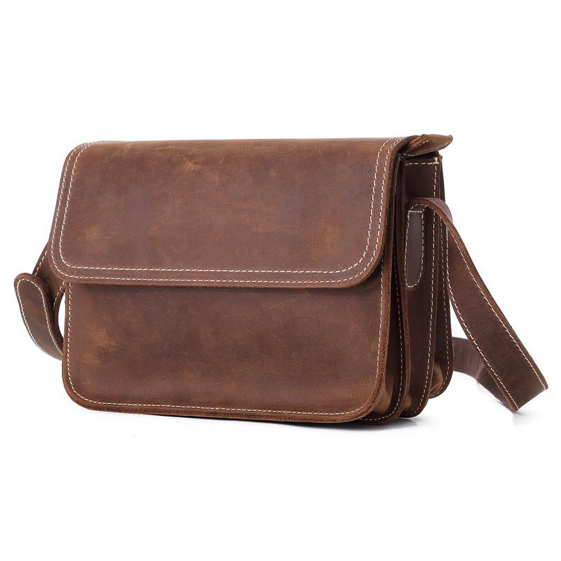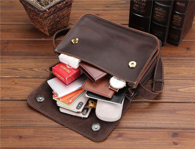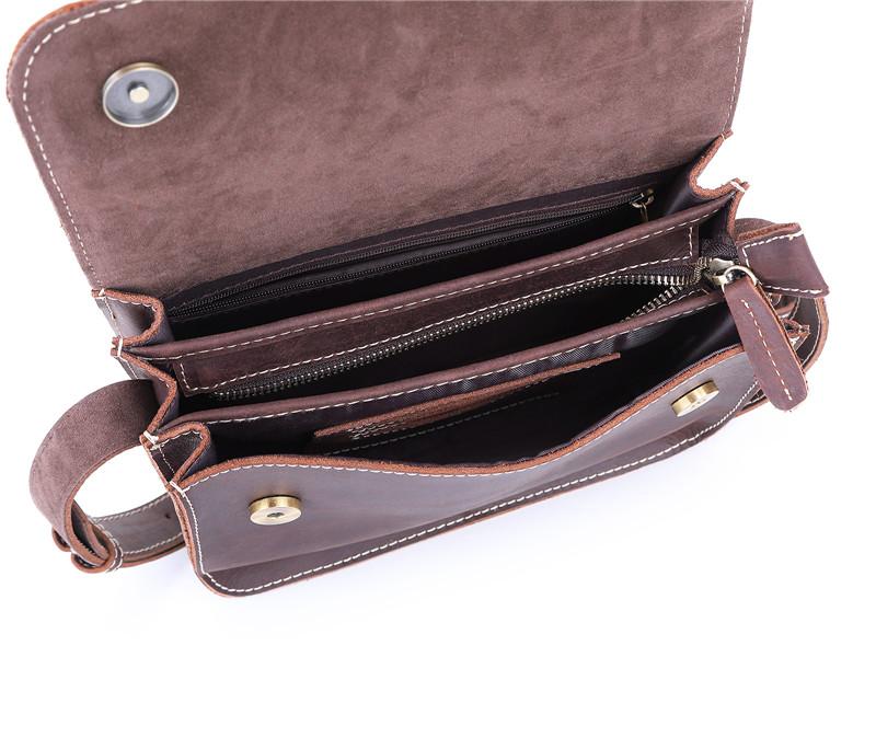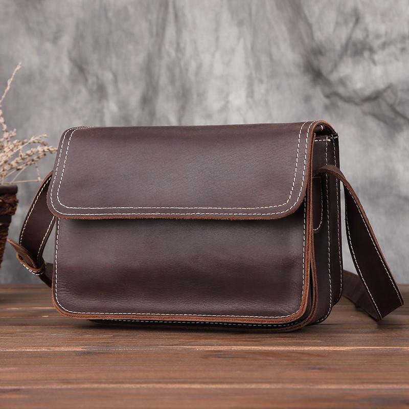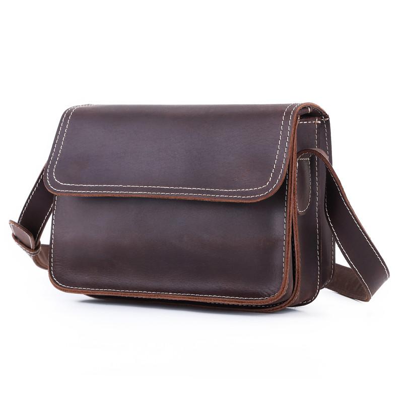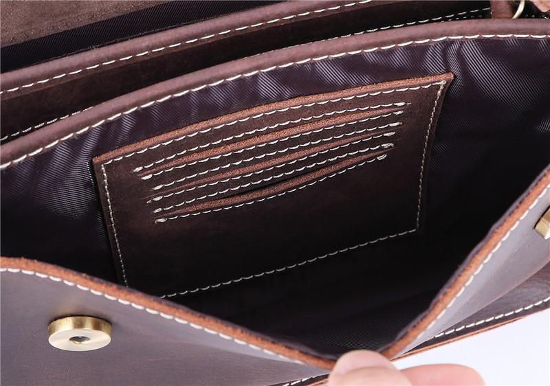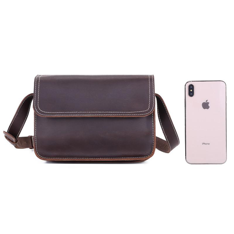 Design: Brown Cool Leather 8 inches Dark Brown Satchel Messenger Bag Side Bag Courier Bag For Men