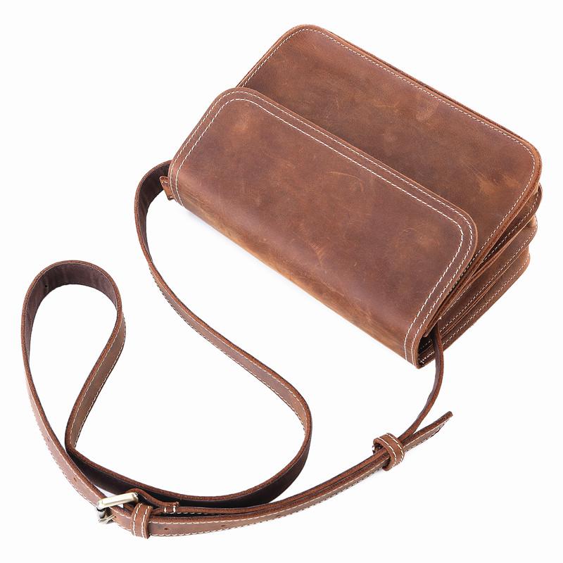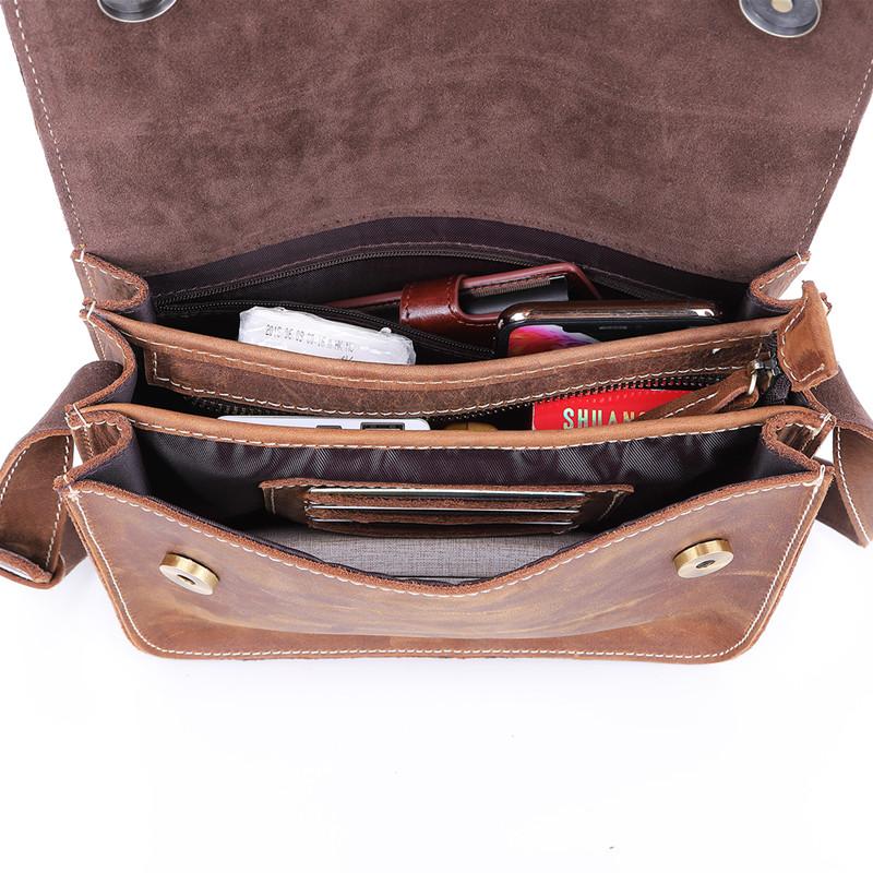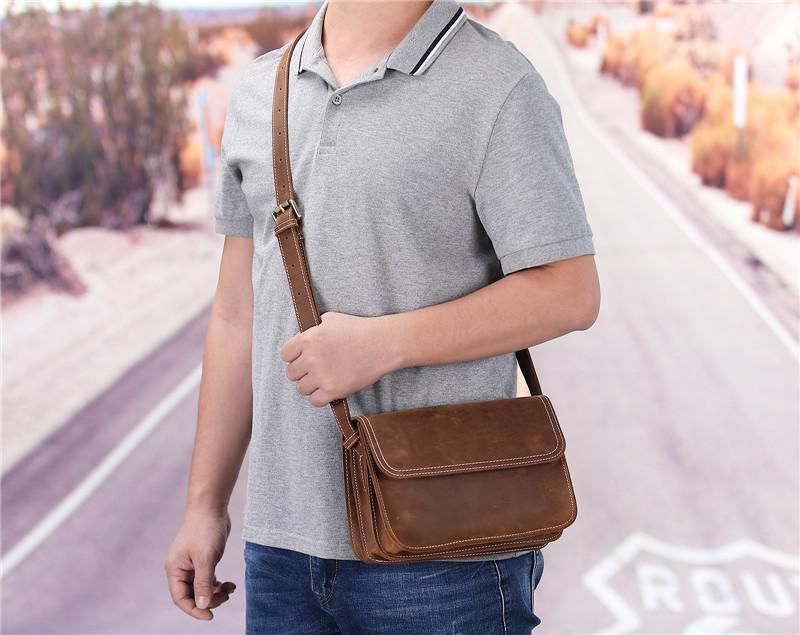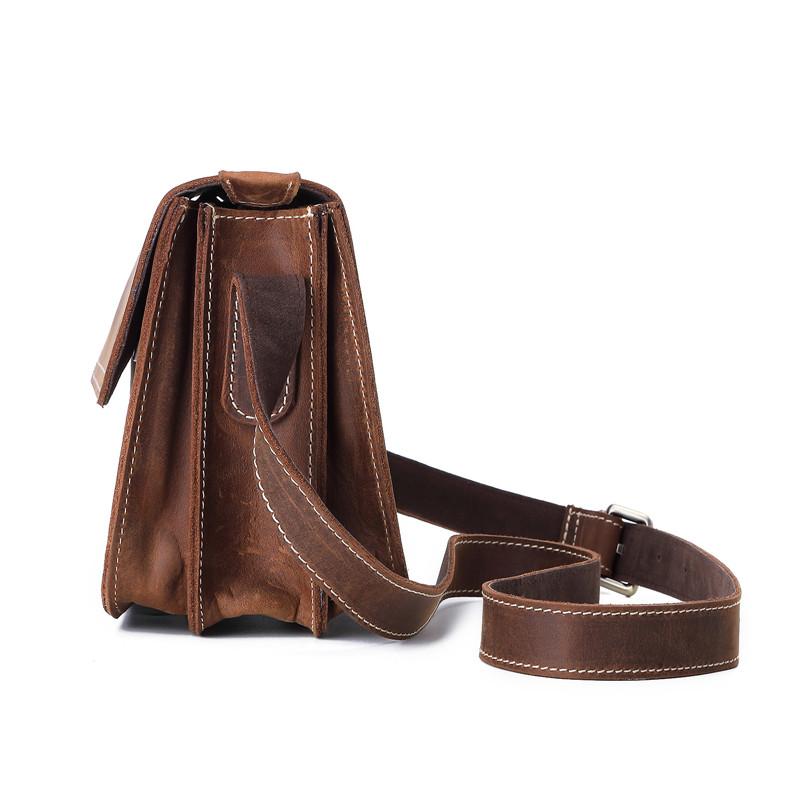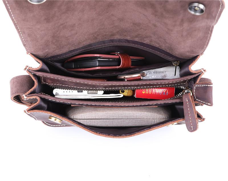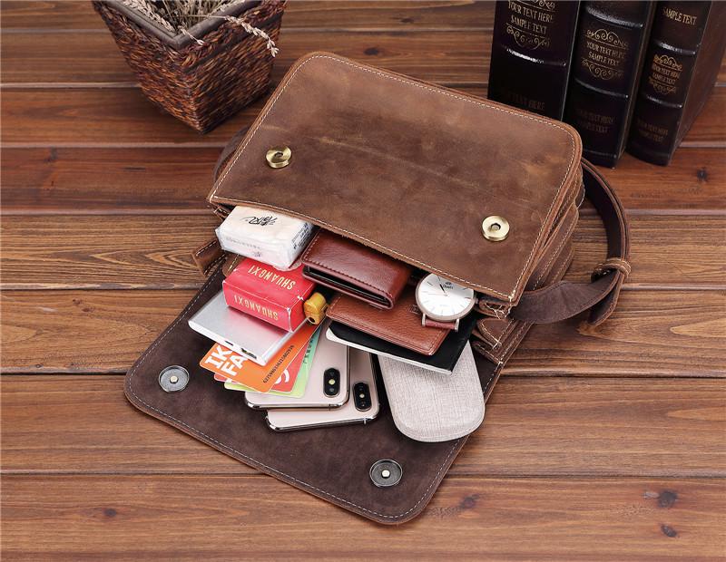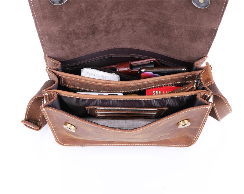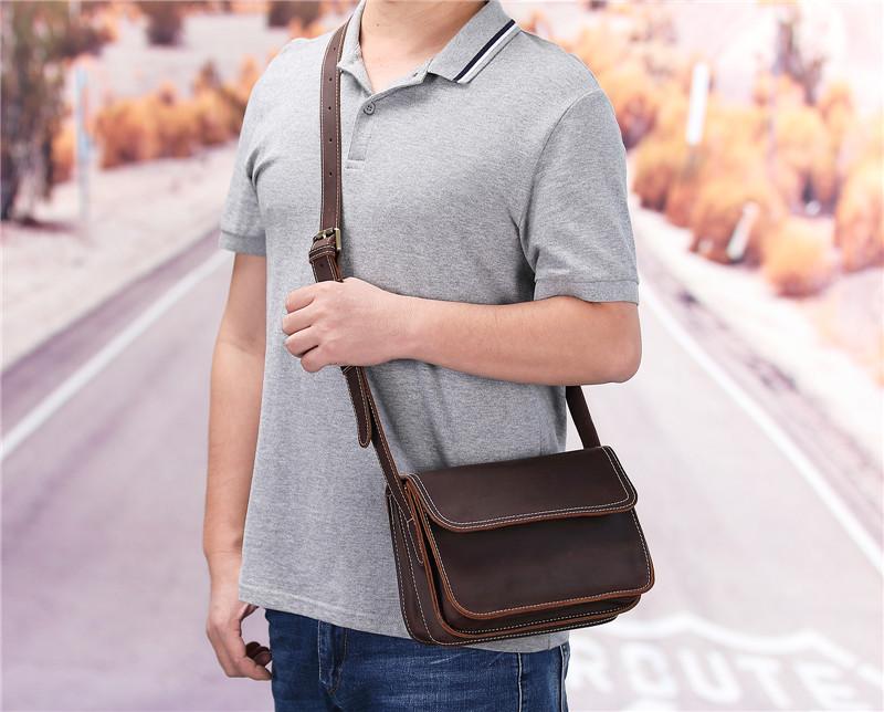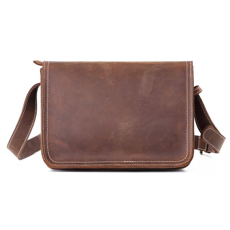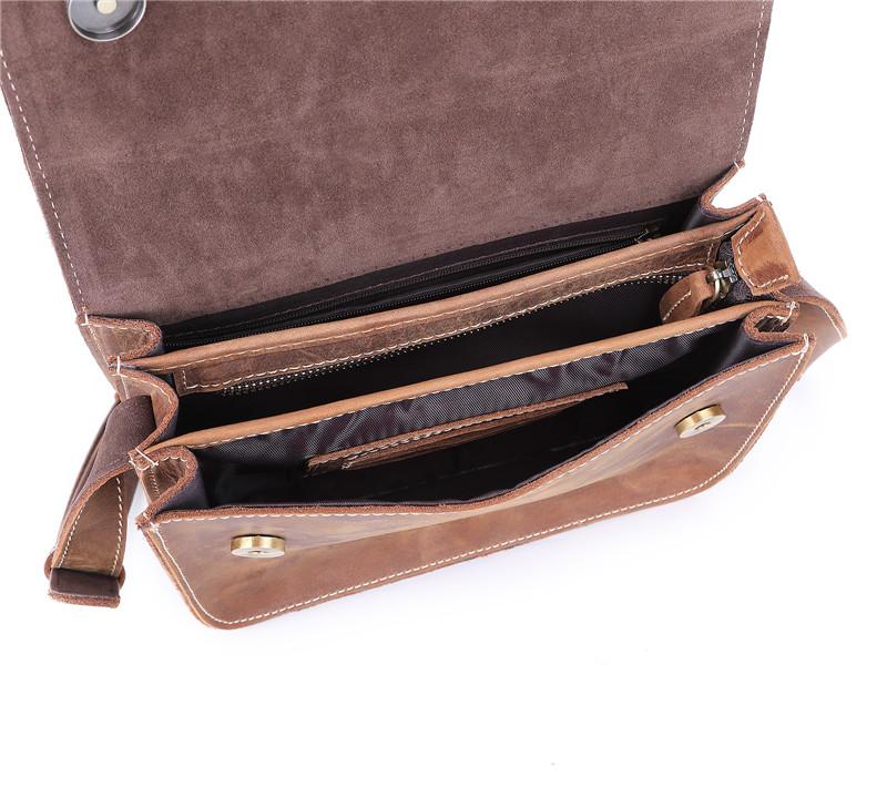 Design: Brown Cool Leather 8 inches Dark Brown Satchel Messenger Bag Side Bag Courier Bag For MenOverview: