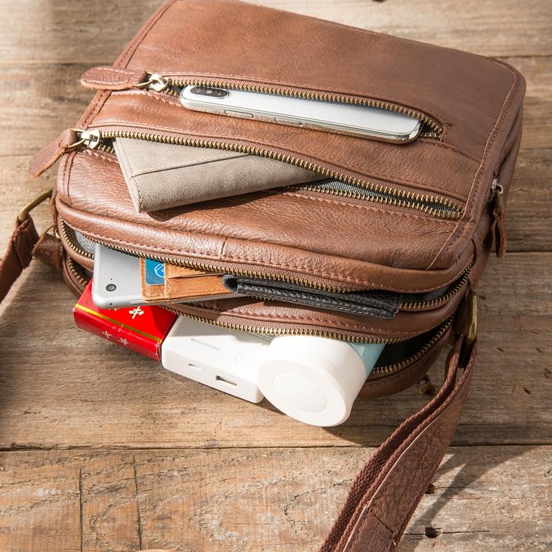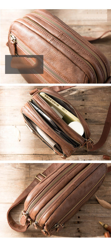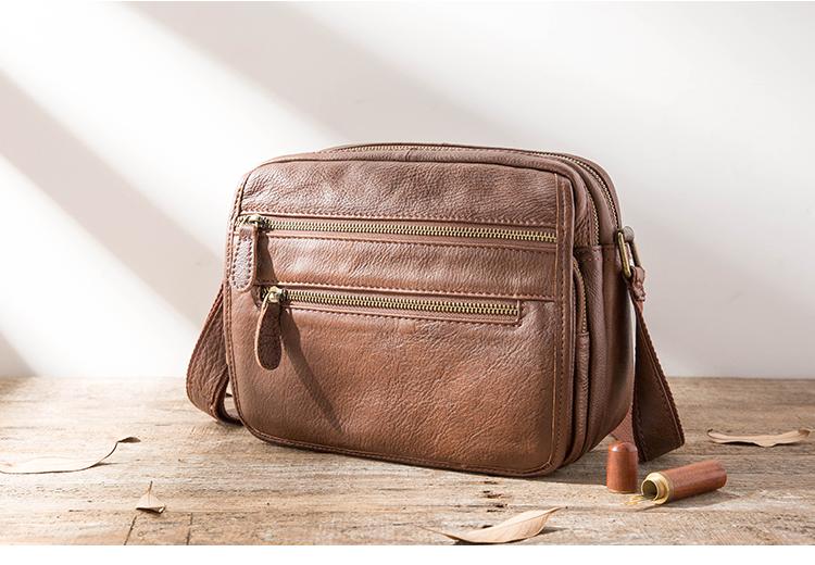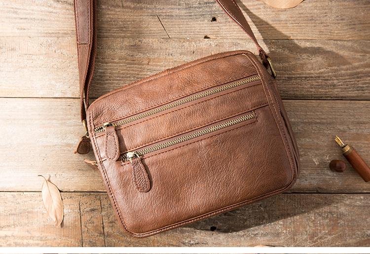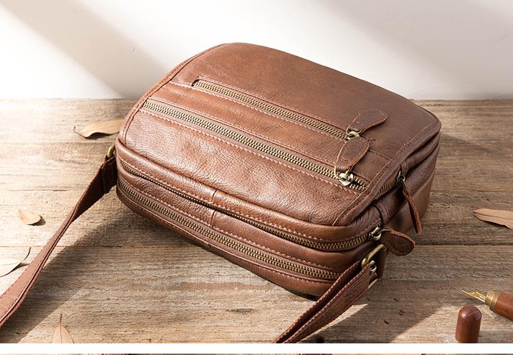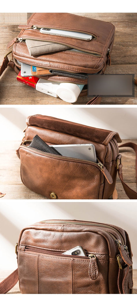 Design: Brown Cool Leather Mens 10 inches Casual Shoulder Bags Messenger Bags for Men