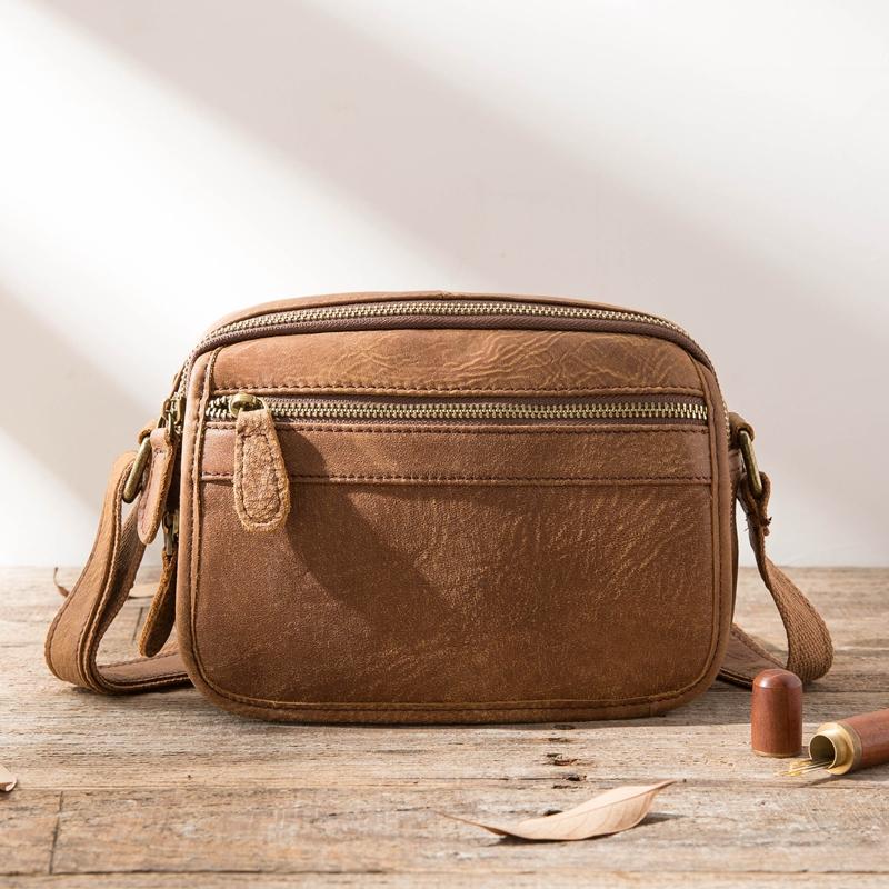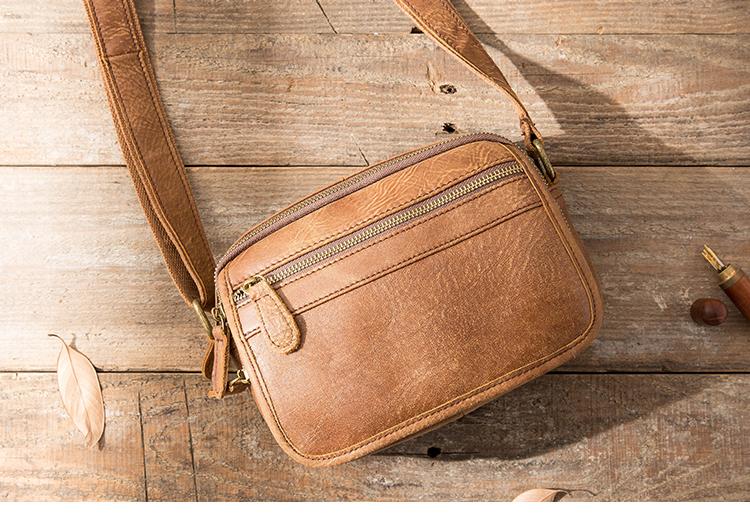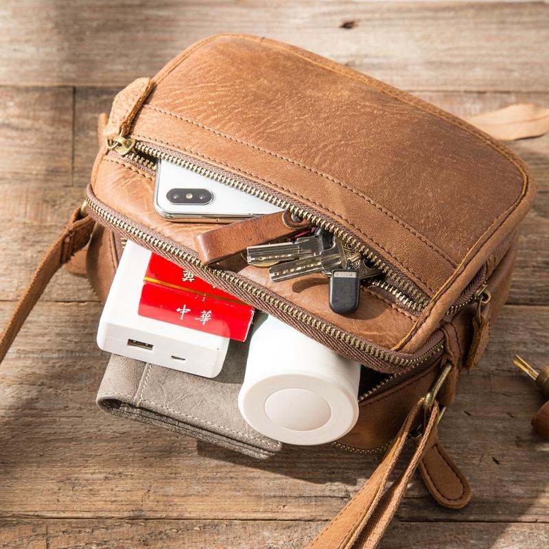 Style: Brown Cool Leather Mens 8 inches Shoulder Bag Postman Bag Black Messenger Bags Side Bag for Men