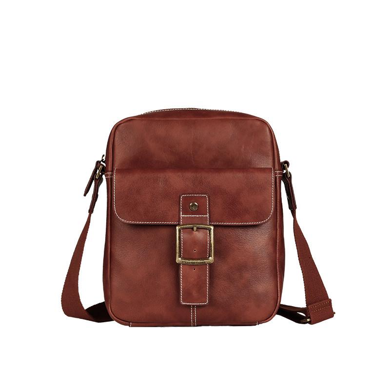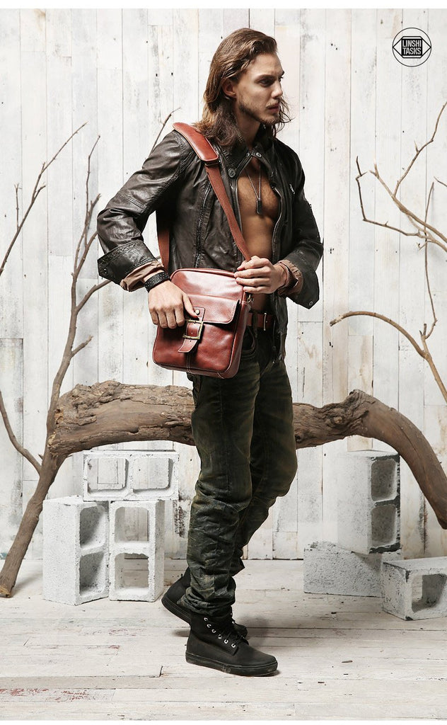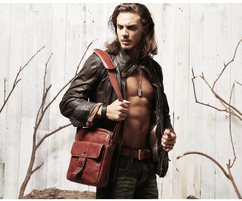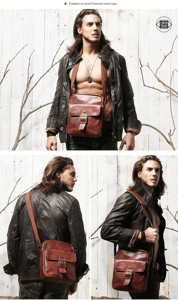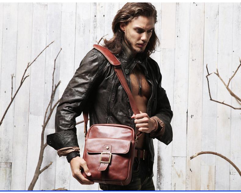 Design: Brown Cool Leather Mens Small Vertical Side Bag Messenger Bags Brown Casual Bicycle Bags for Men