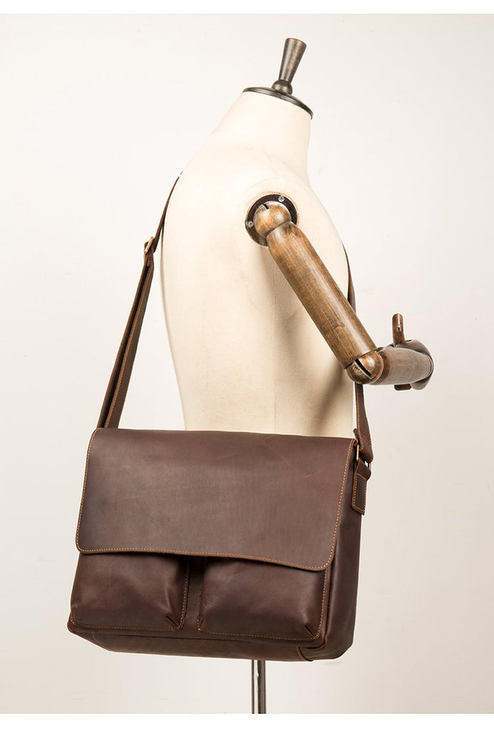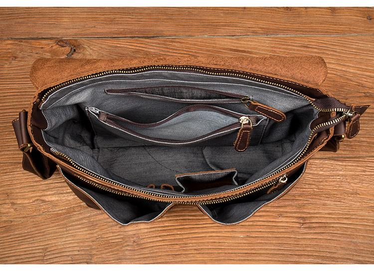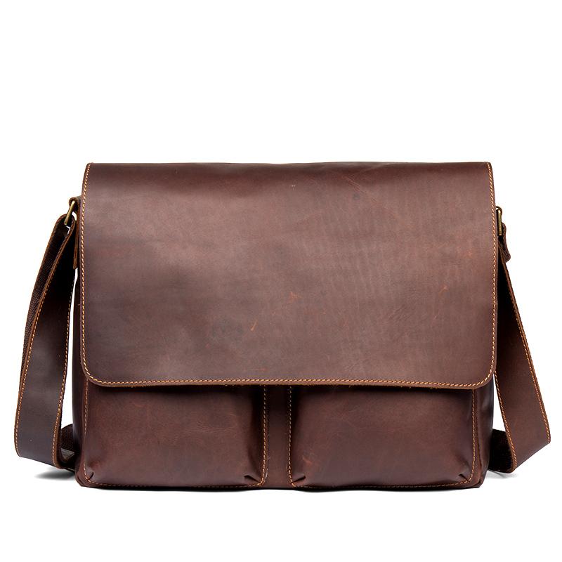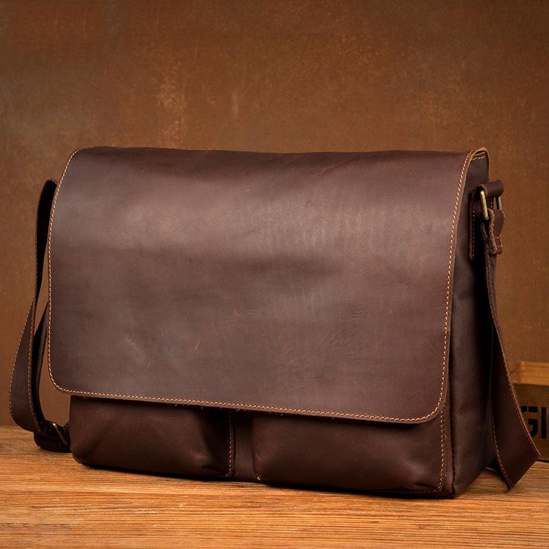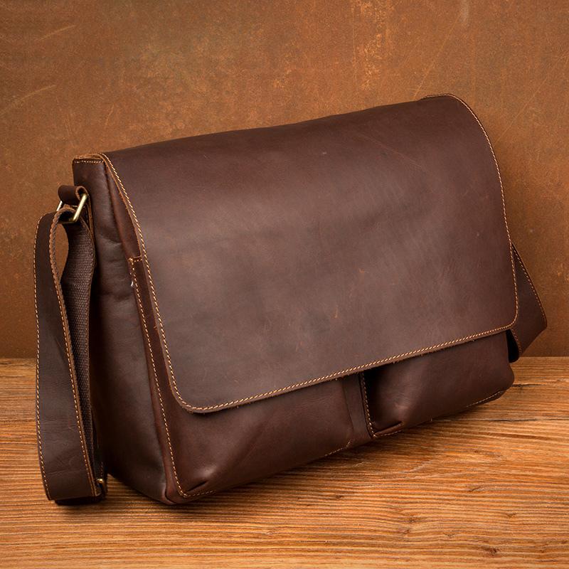 Cool Brown Leather 13 inches Mens Courier Bag Messenger Bags Postman Bag for Men