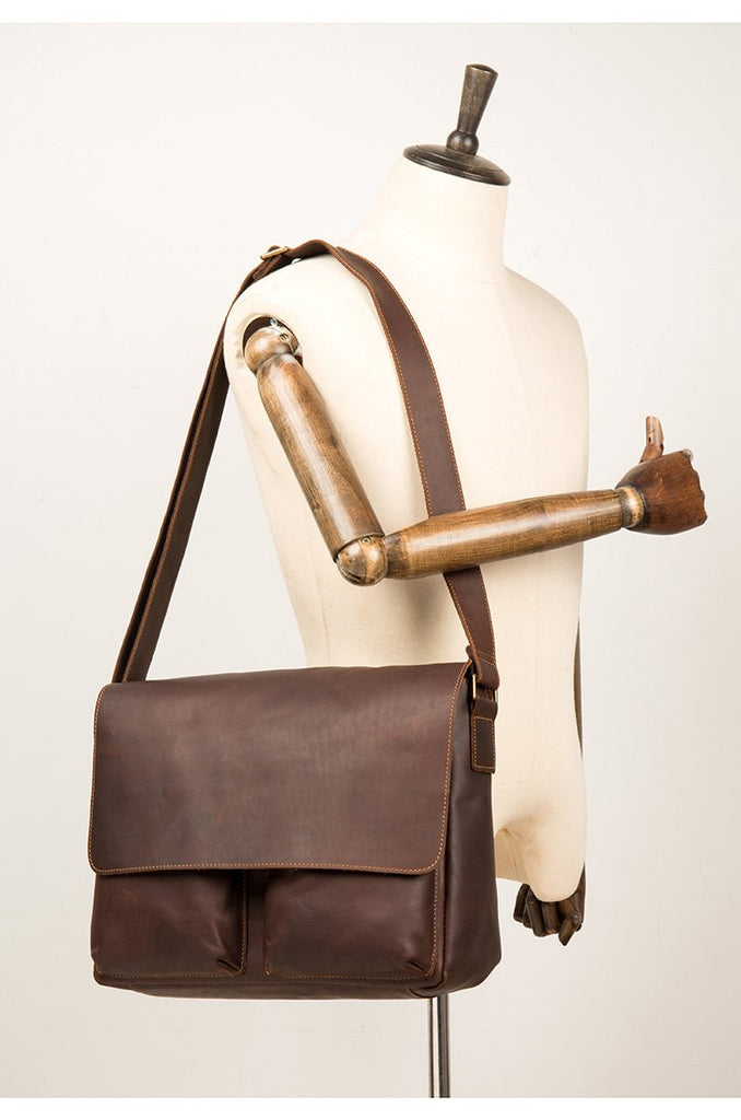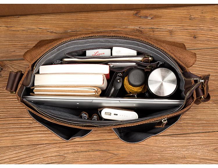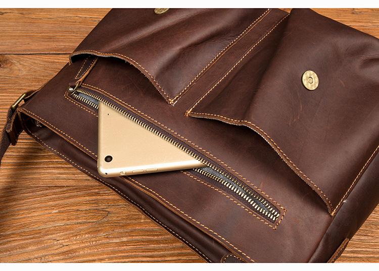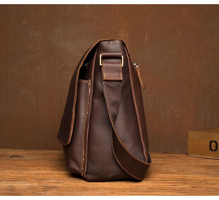 Design: Brown Leather 13 inches Mens Small Messenger Bags Shoulder Bag for Men