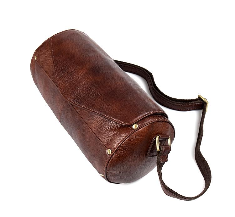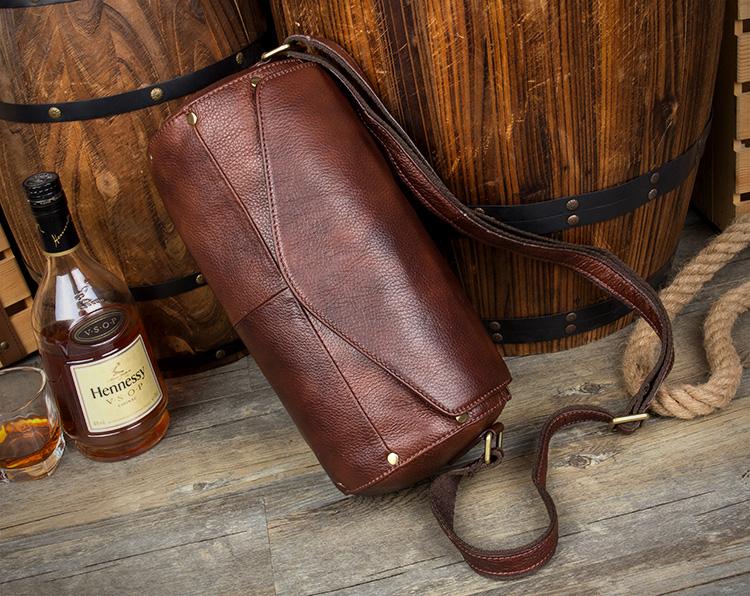 Design: Brown Leather Mens 8 inches Bucket Bag Shoulder Bag Messenger Bag For Men