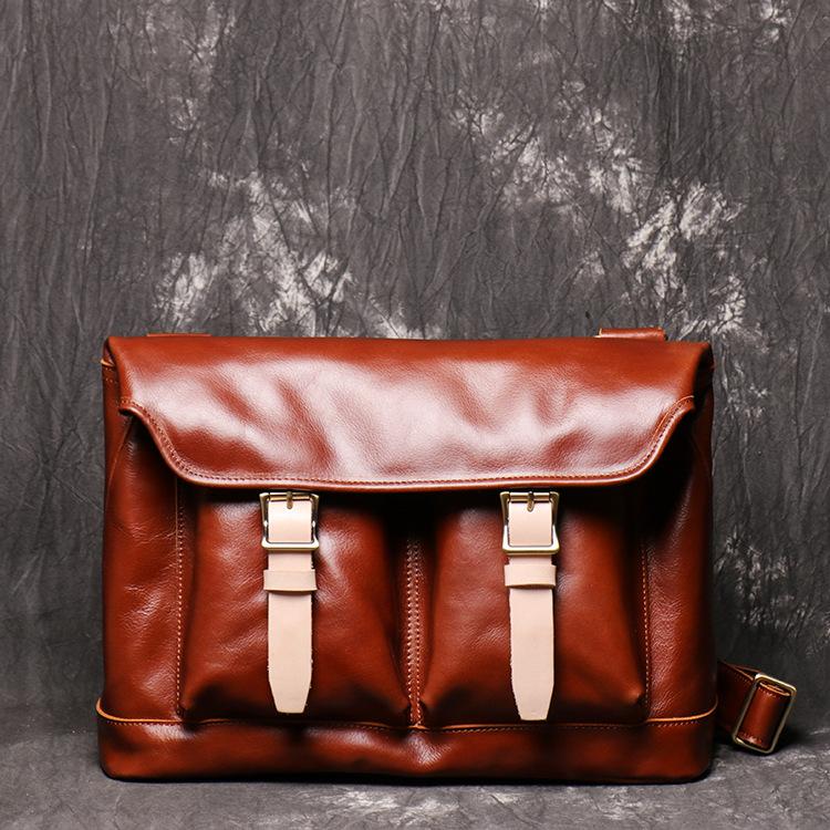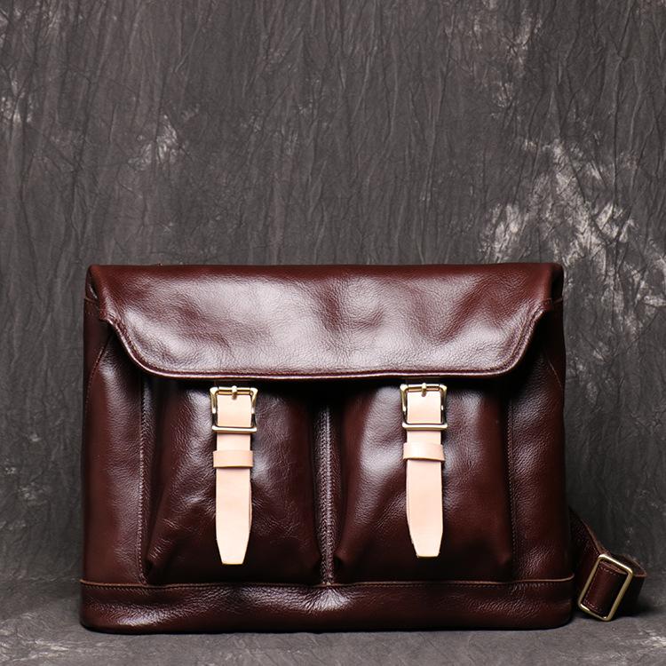 Design: Brown Leather Men Satchel Side Bag Messenger Bag Black Courier Bag For MenOverview: