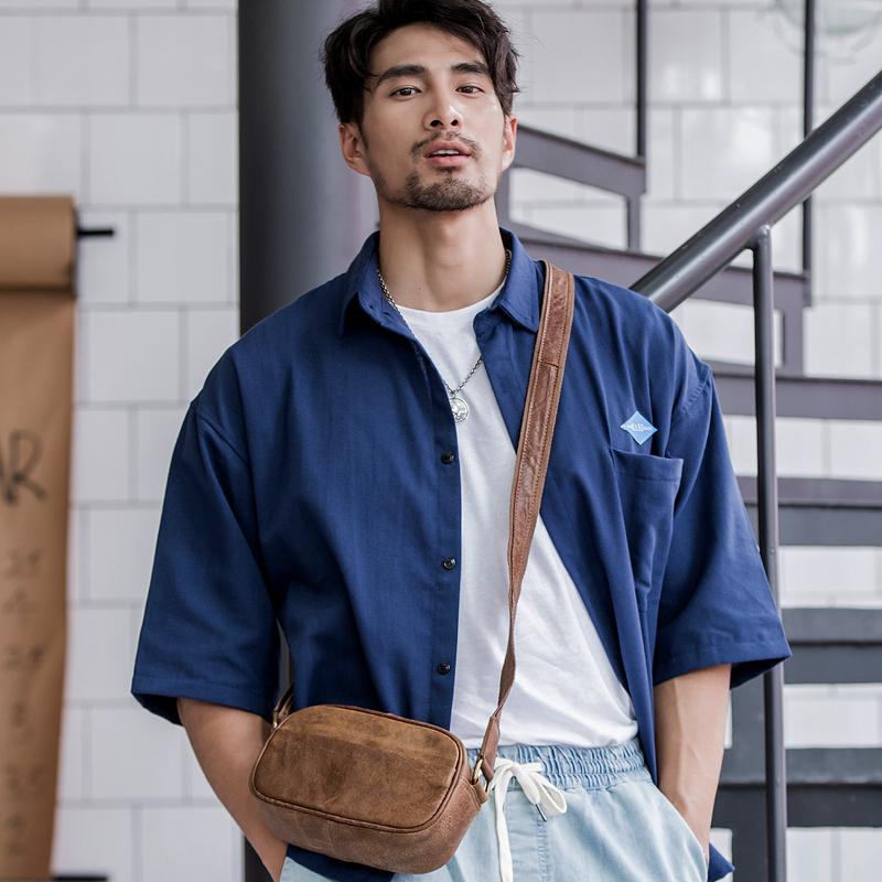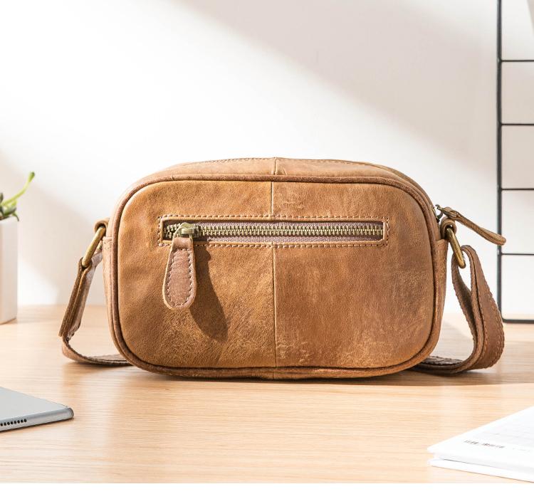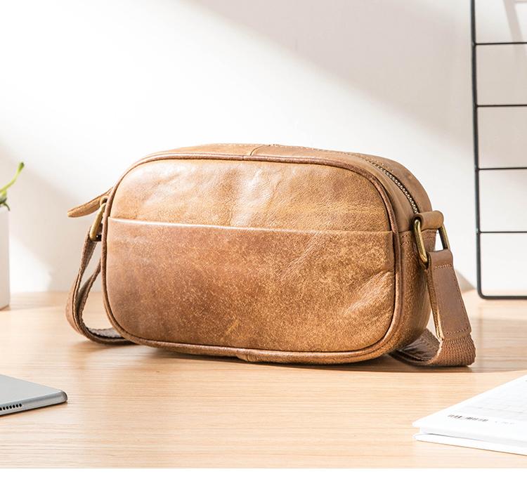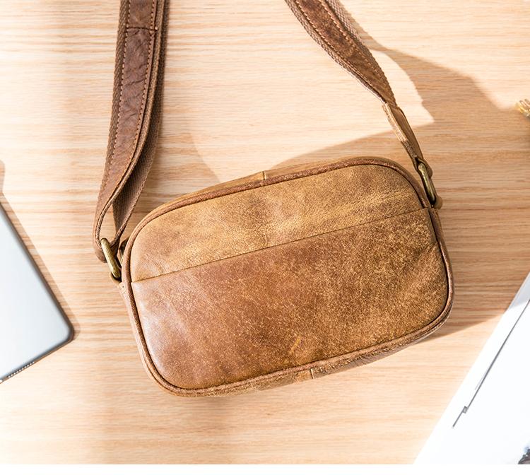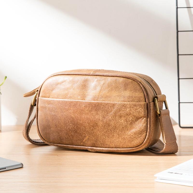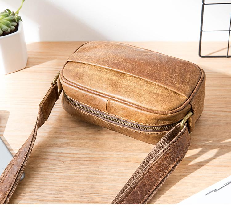 Camel Leather Mens Mini Phone Bag Courier Bag Small Messenger Bags Postman Bag for Men