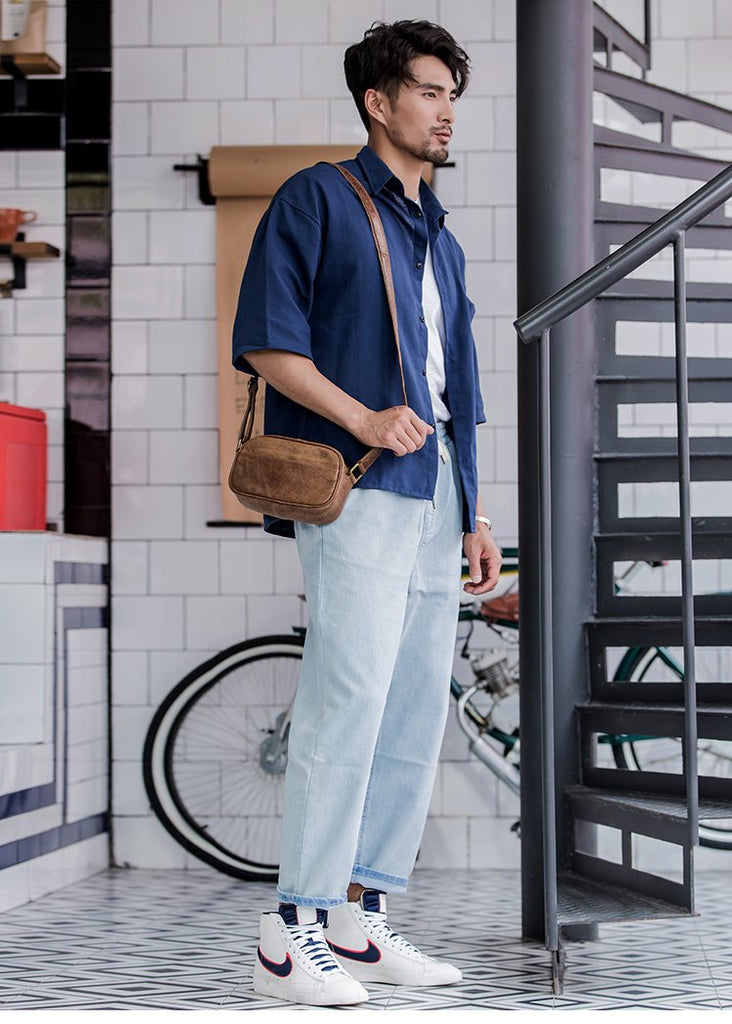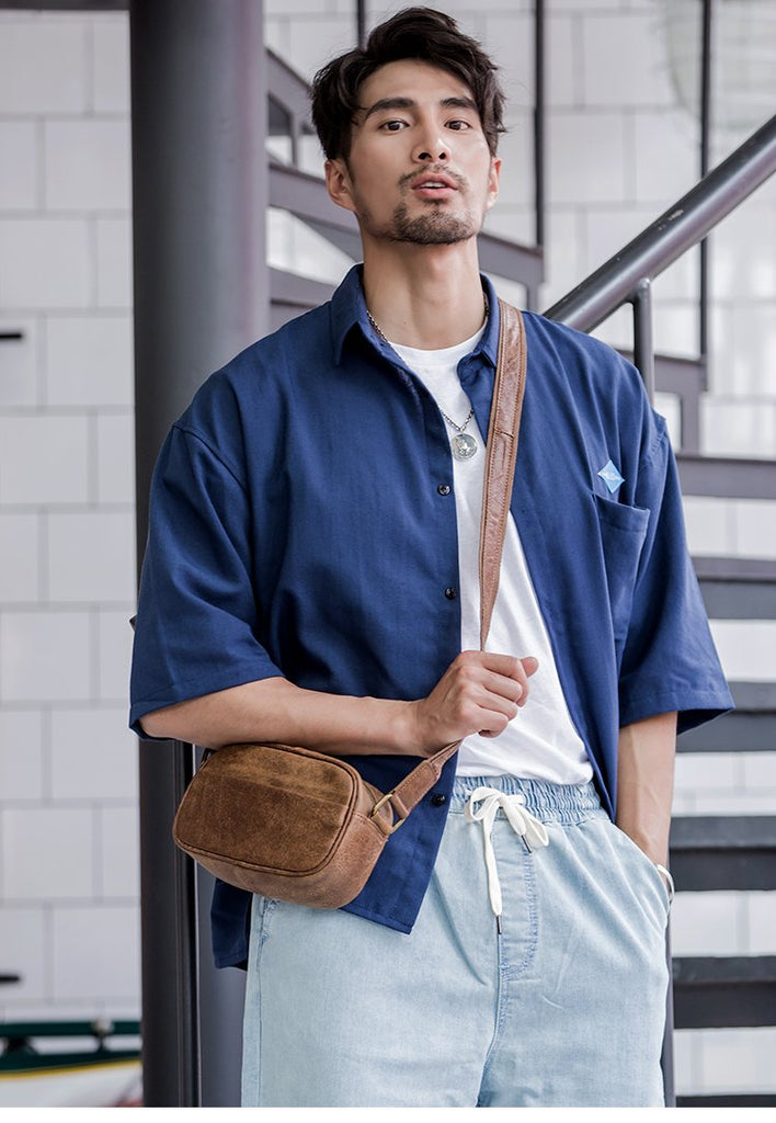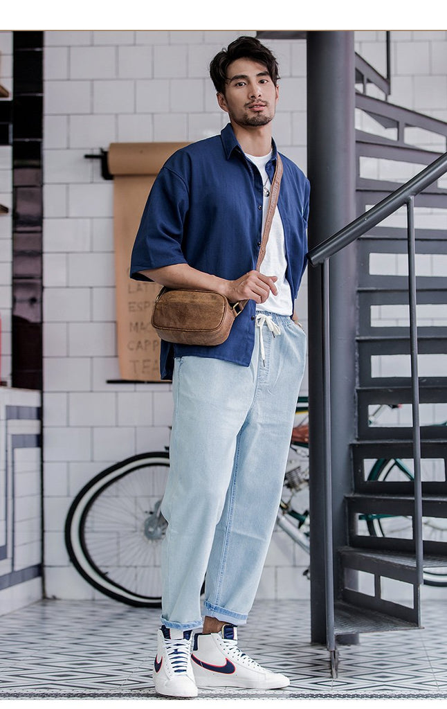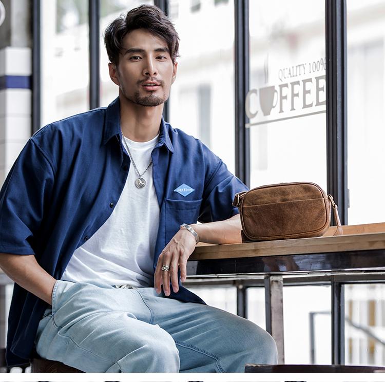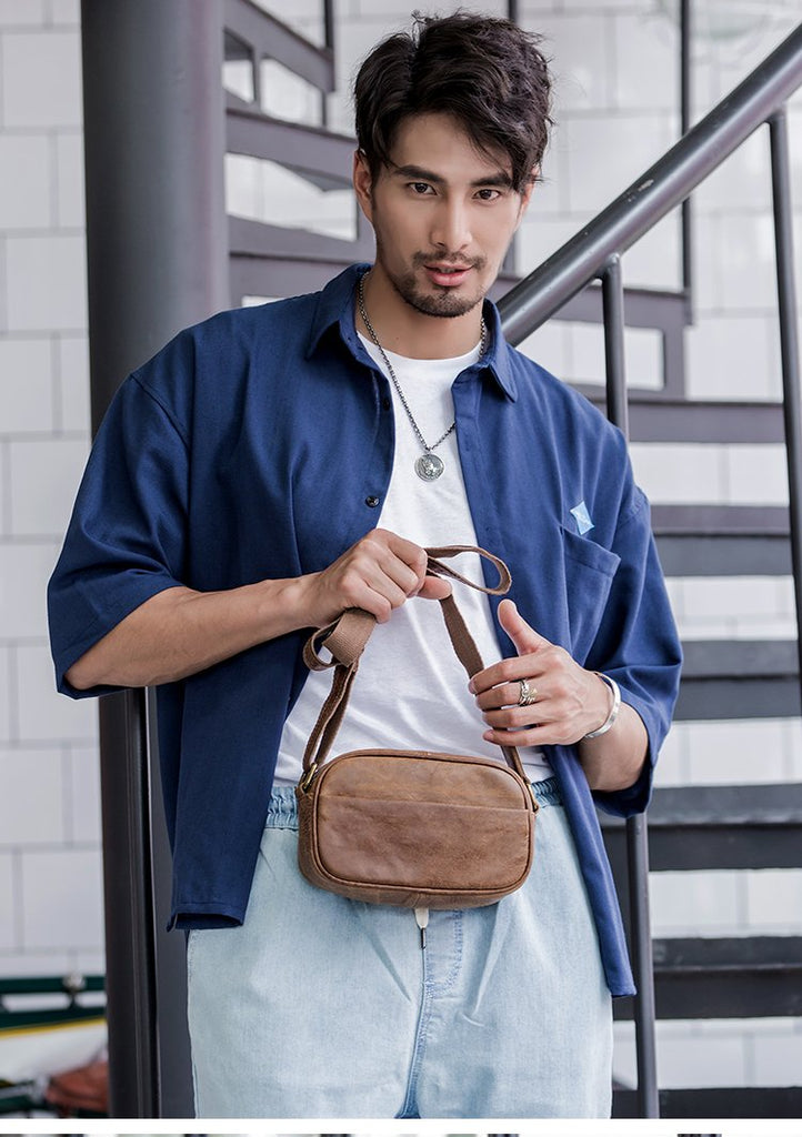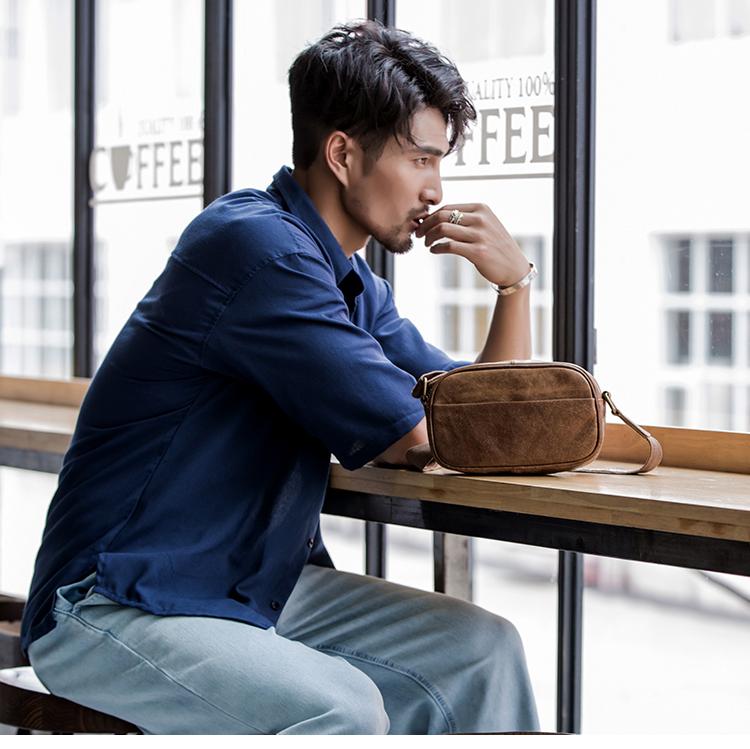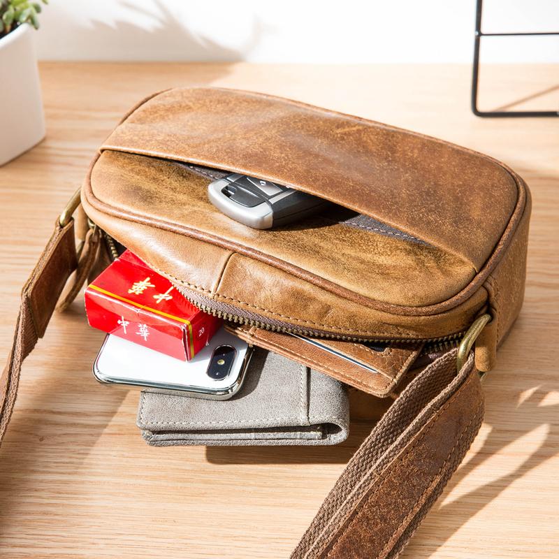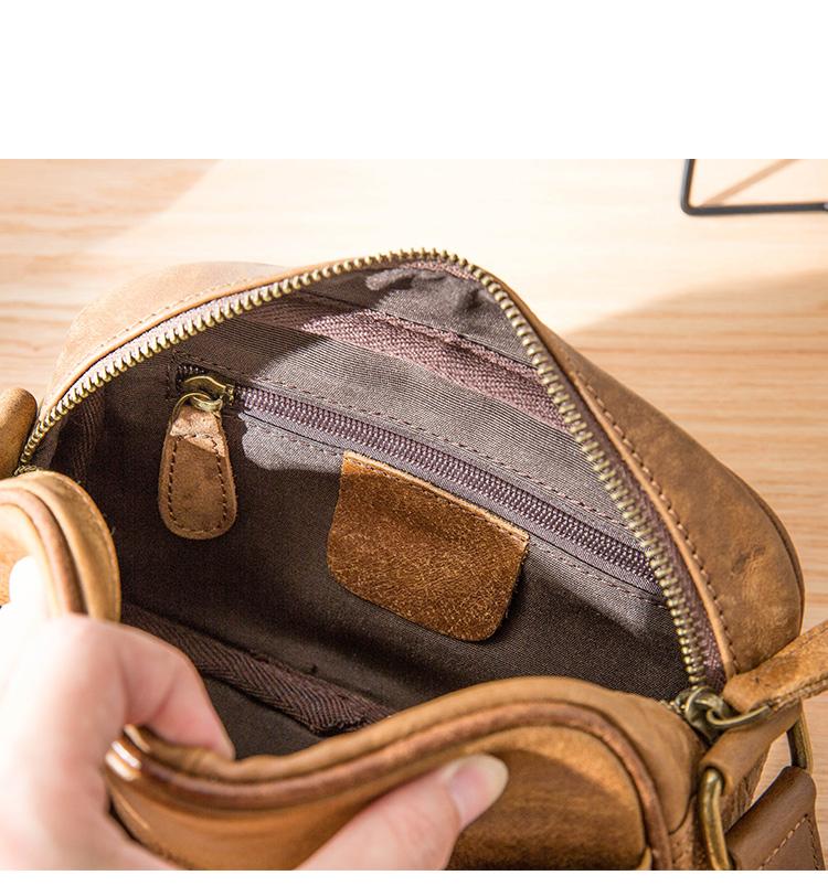 Design: Brown Retro Leather Mens Horizontal Mini Phone Bag Small Messenger Bags Shoulder Bag for Men