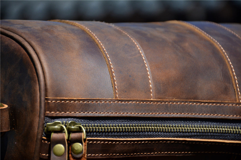 Discover the perfect blend of rugged charm and modern functionality with our Leather Barrel Crossbody Bag, a uniquely shaped accessory that combines classic design with practical organization. This distinctive Barrel Leather Bag features a rounded, Boston-inspired silhouette measuring 29cm x 17cm x 14cm, expertly crafted from premium full-grain crazy horse leather in two rich texture options: smooth vintage or textured rustic finish. Available in versatile color variations, this stylish Barrel Shoulder Bag offers both crossbody and shoulder carry options with its detachable, adjustable strap, making it the ideal everyday companion for the modern man on the move.