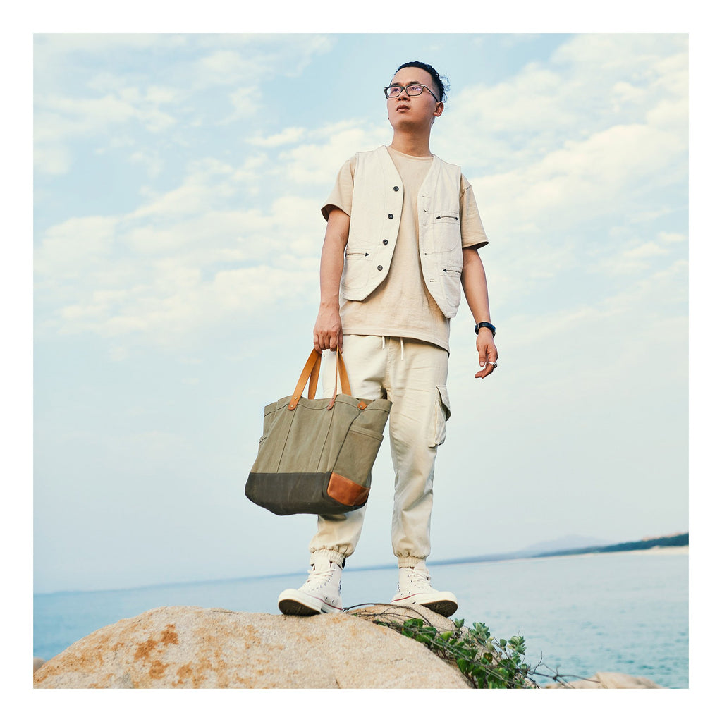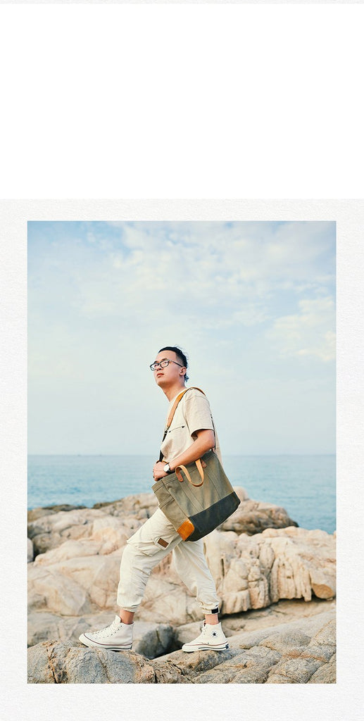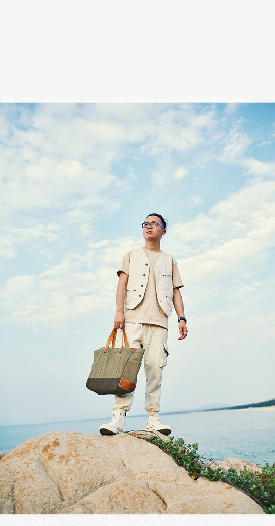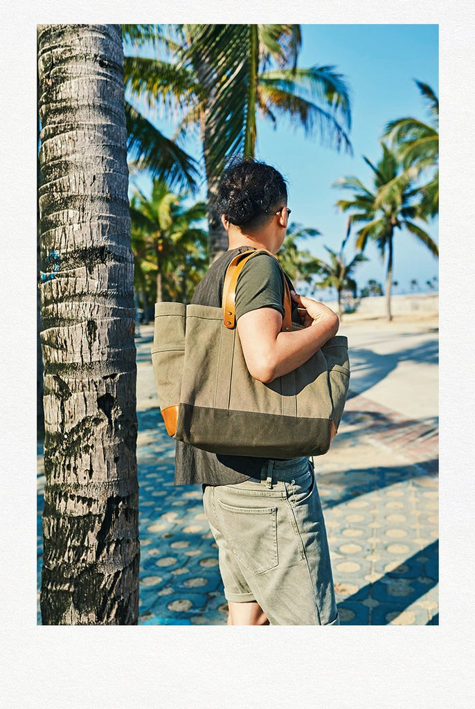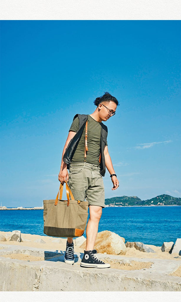 Design: Canvas Cool Mens 14 inches Green Tote Bag Canvas Handbag Canvas Tote for Men Women