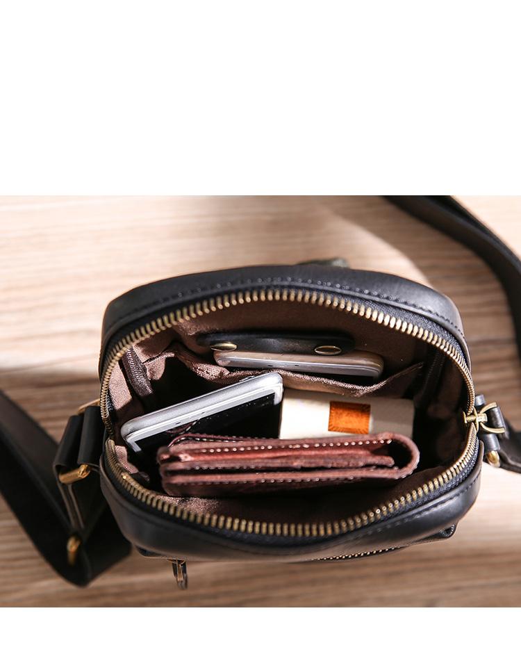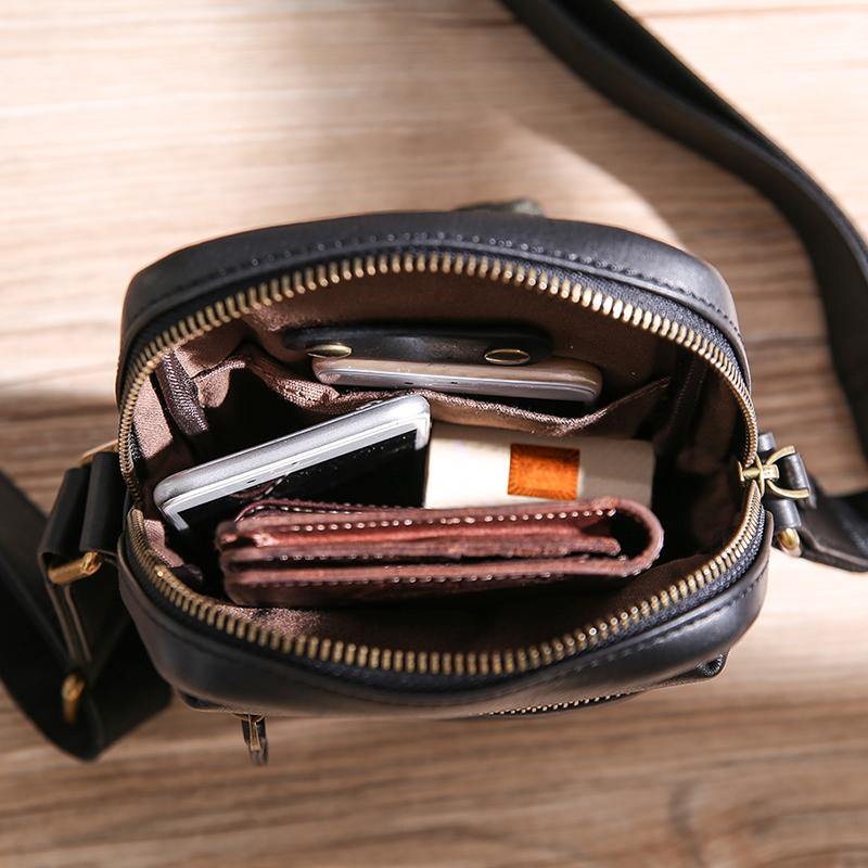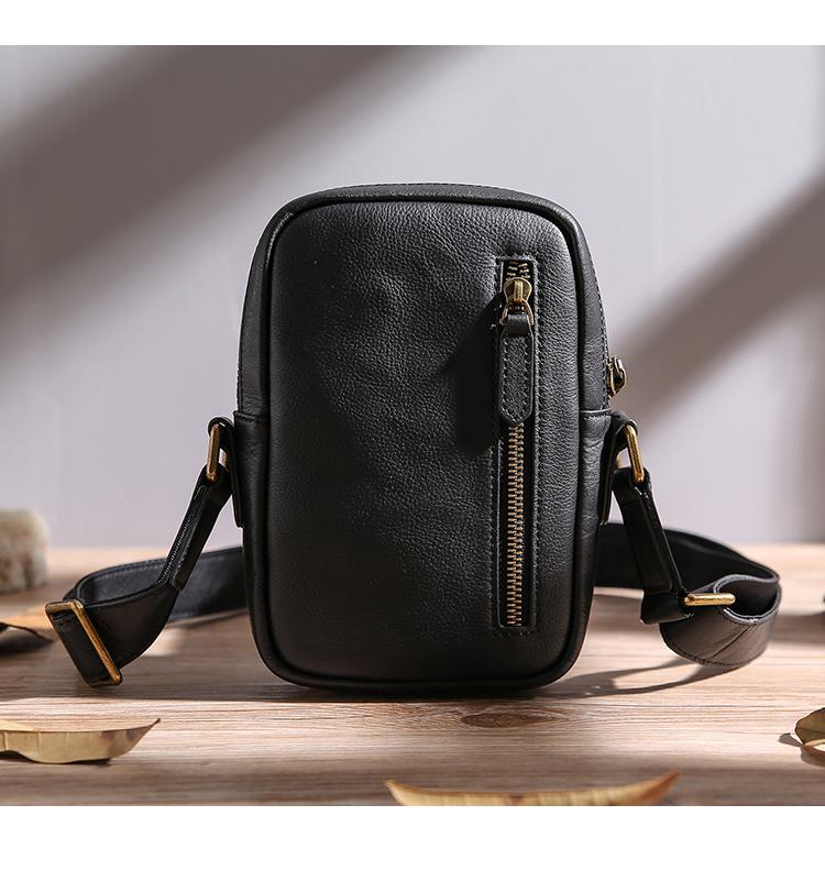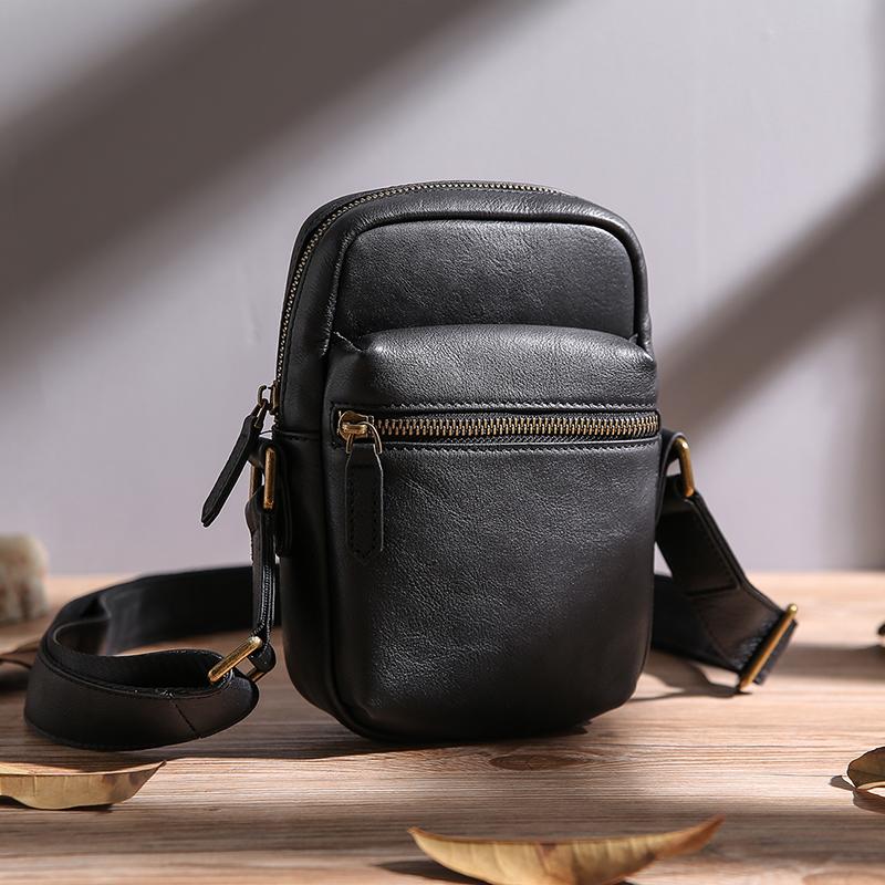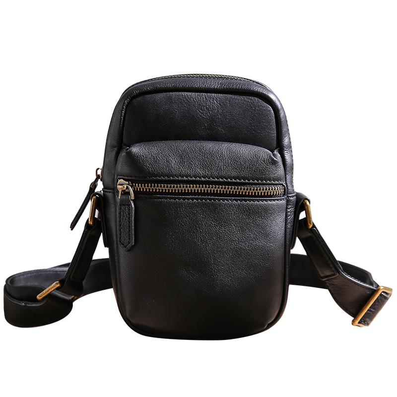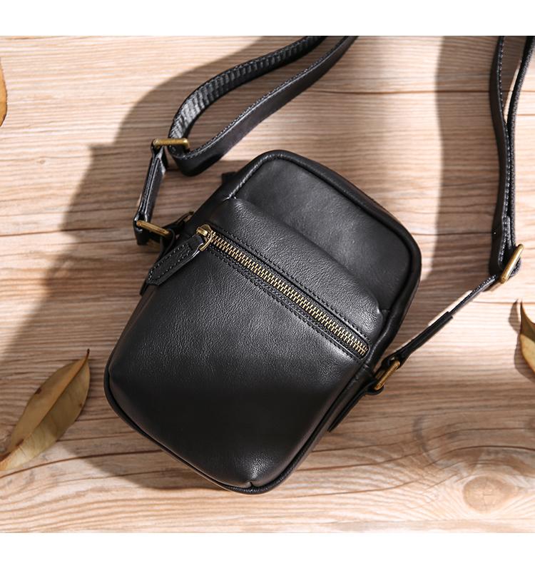 Design: Casual Black Leather MENS Small Side Bag Brown Messenger Bag Mobile Bag For Men