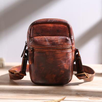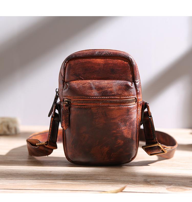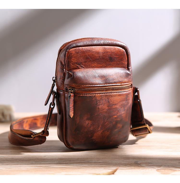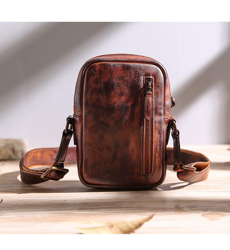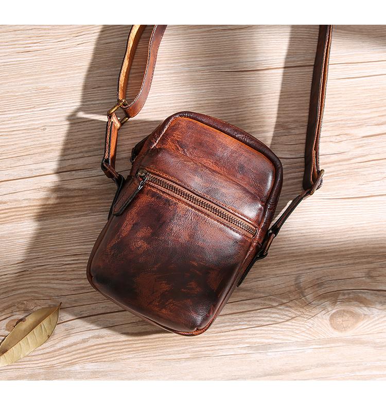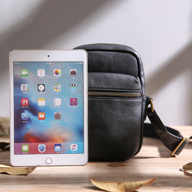 Design: Casual Black Leather MENS Small Side Bag Brown Messenger Bag Mobile Bag For Men