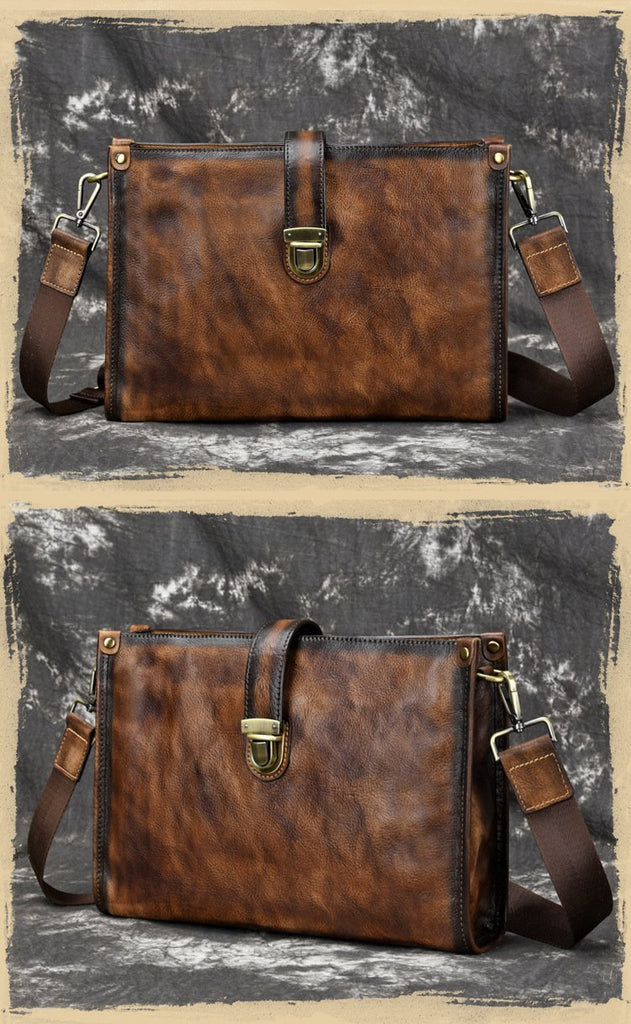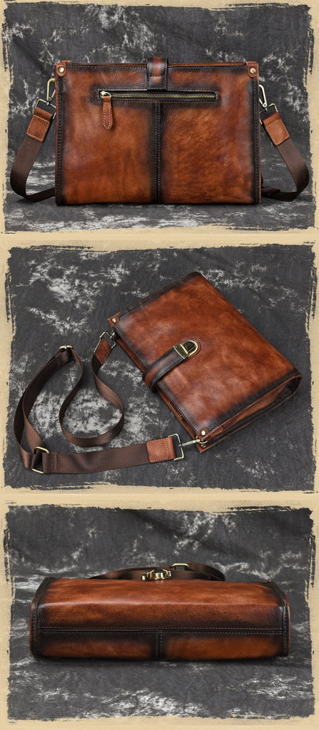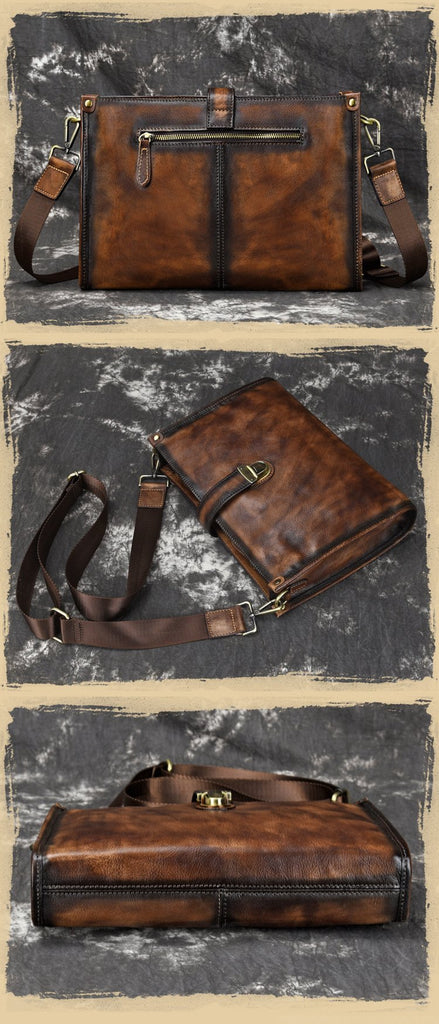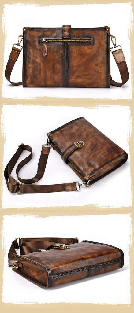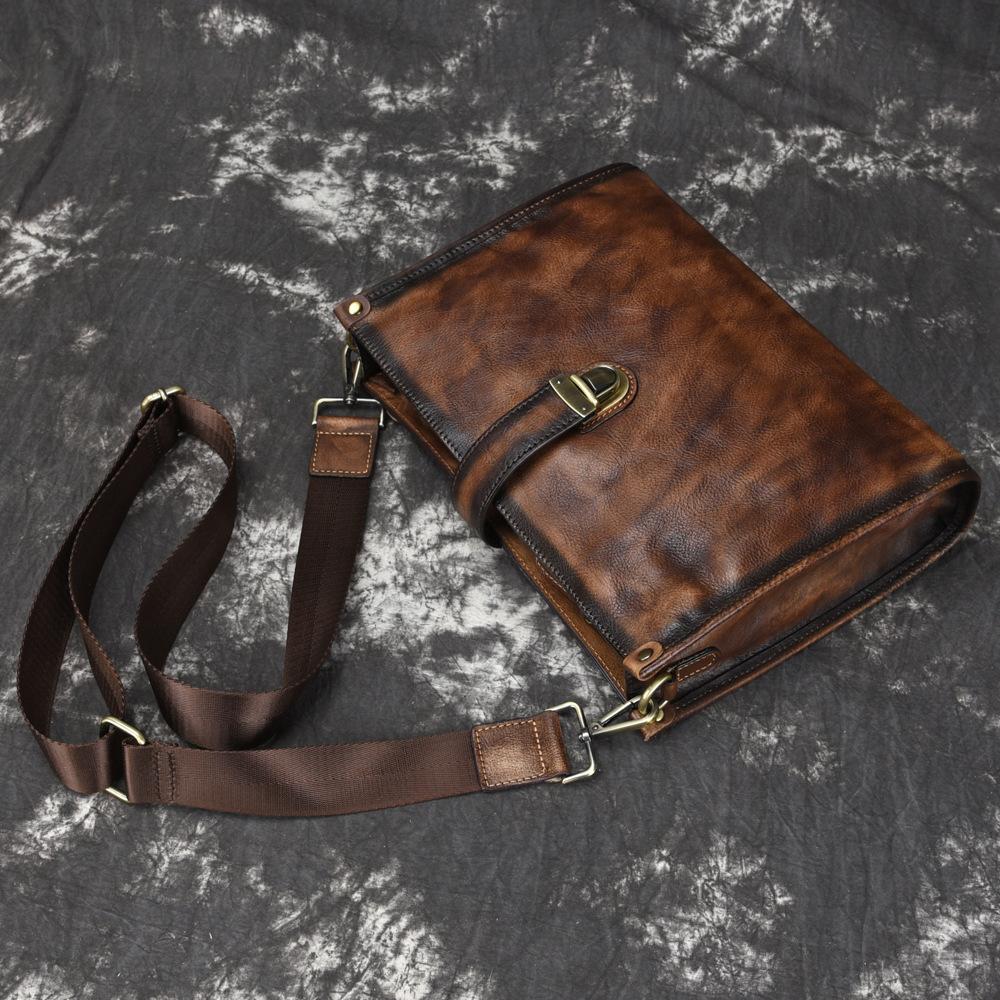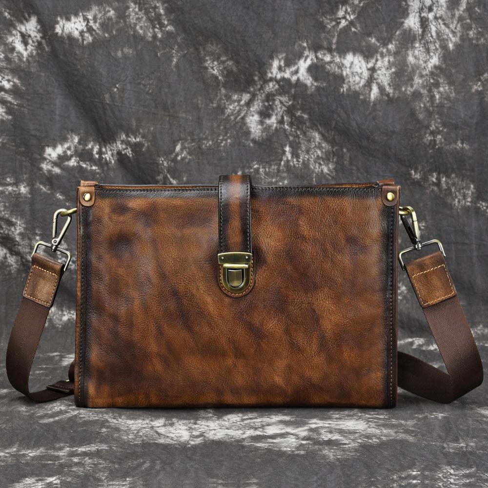 Design: Vintage Brown Leather Men's Side Bag Messenger Bag 10'' Courier Shoulder Bag For Men