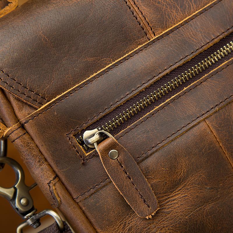 Design: Vintage Brown Leather Mens Small Vertical Side Bags Courier Bag Messenger Bag For MenOverview: