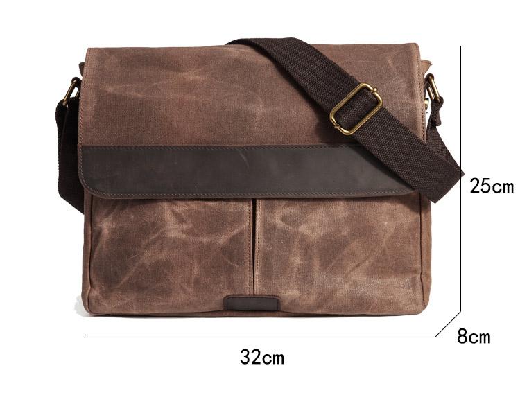 Casual Waxed Canvas Leather Brown Men's Side Bag Shoulder Bag Messenger Bag For Men