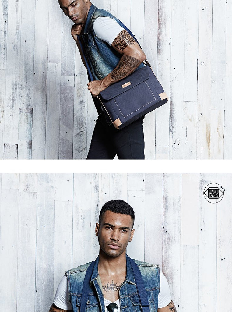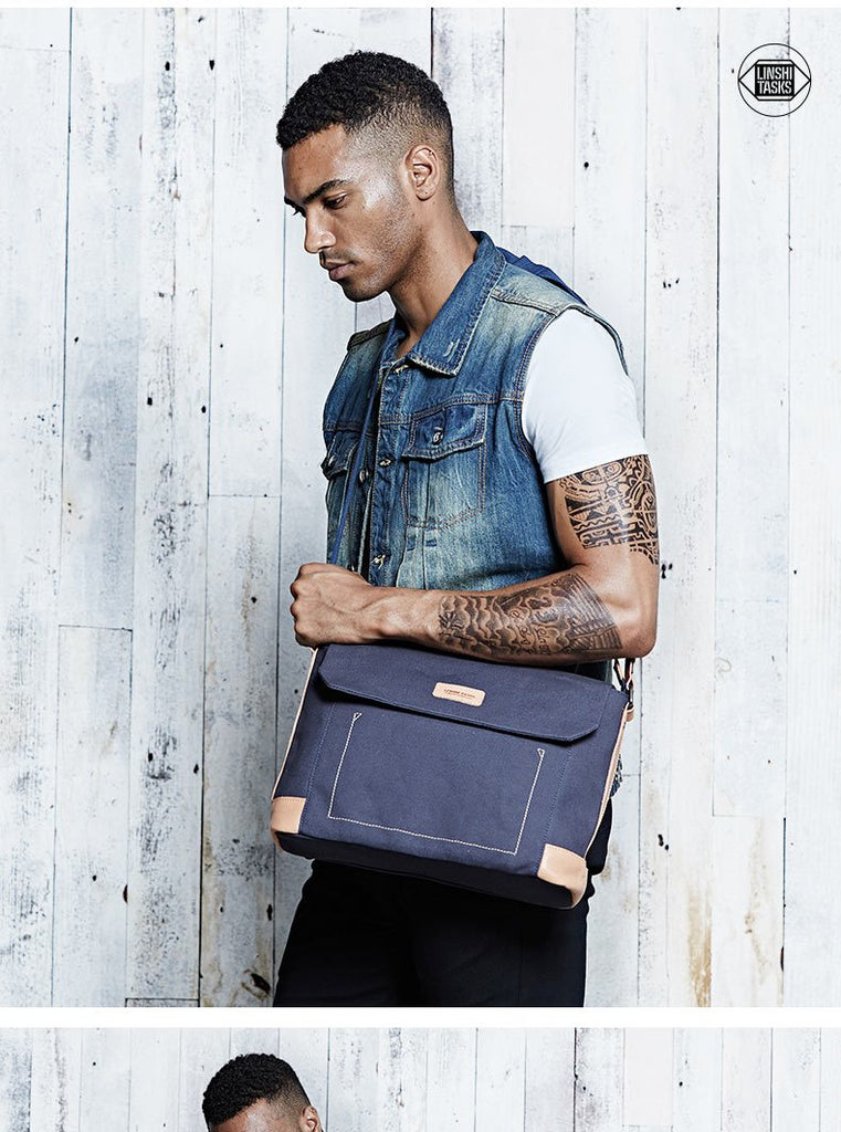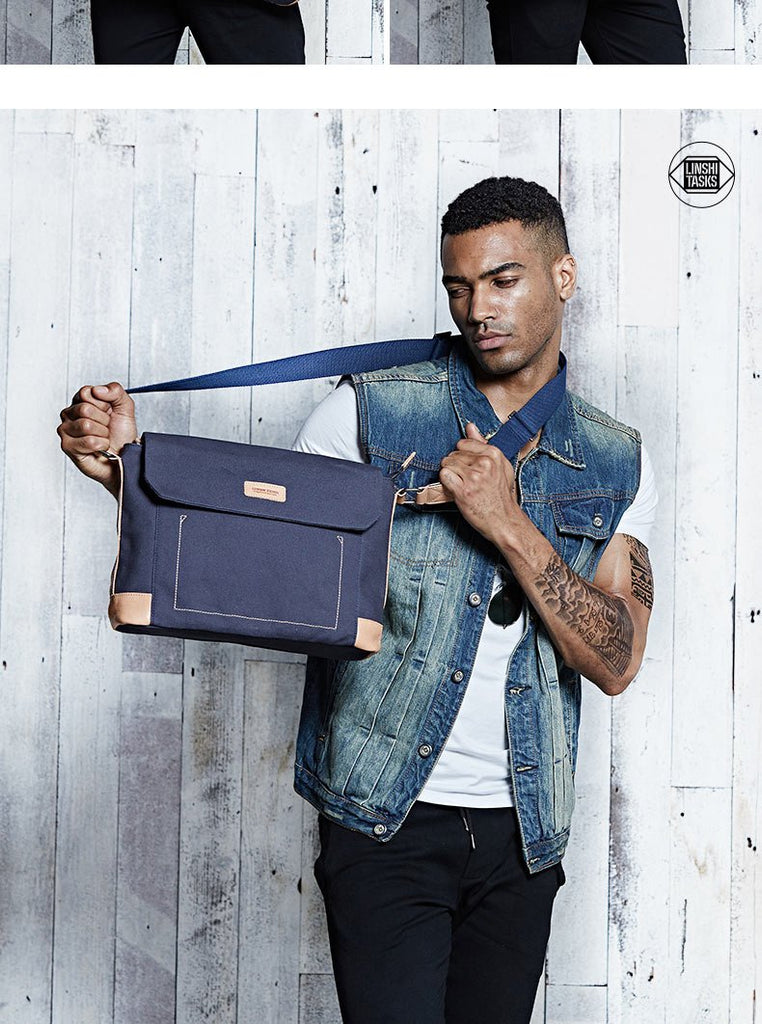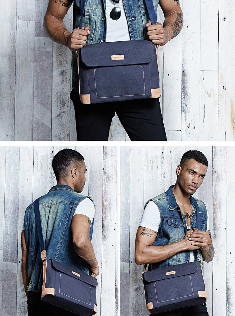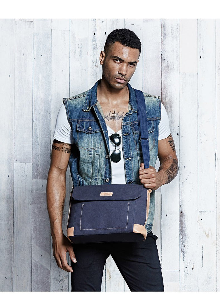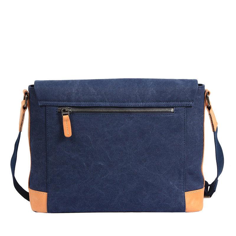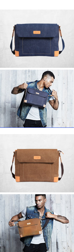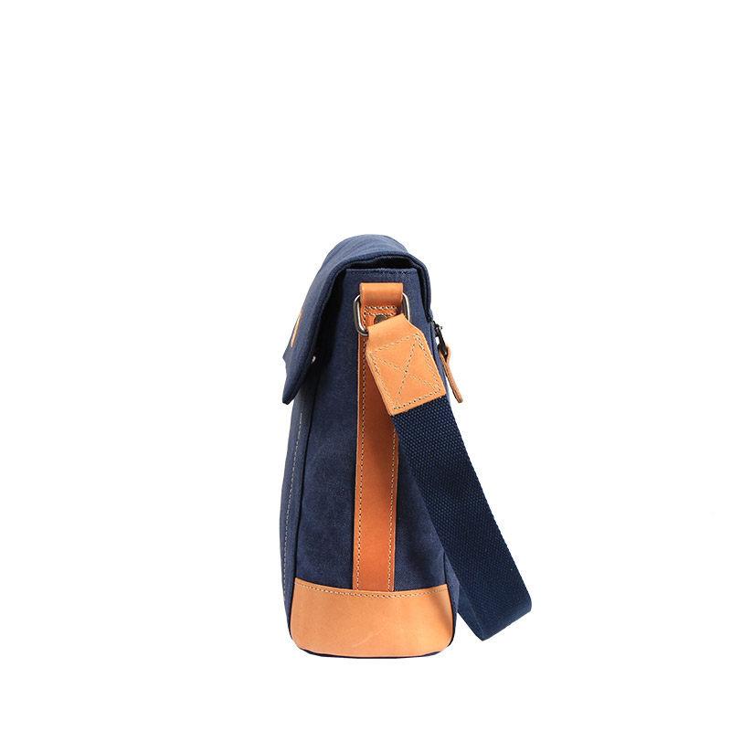 Design: Casual Waxed Canvas Leather Mens Navy Blue Side Bag Messenger Bags Brown Waxed Canvas Courier Bag for Men