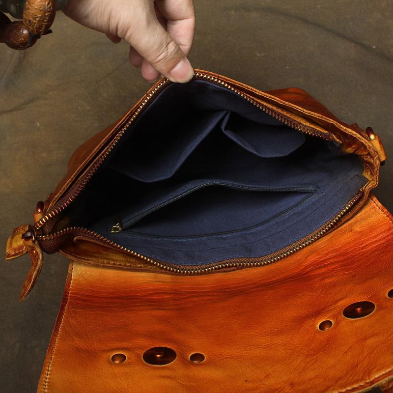 Design: Vintage Brown Leather Men's Side Bag Messenger Bag Brown Courier Bag For Men