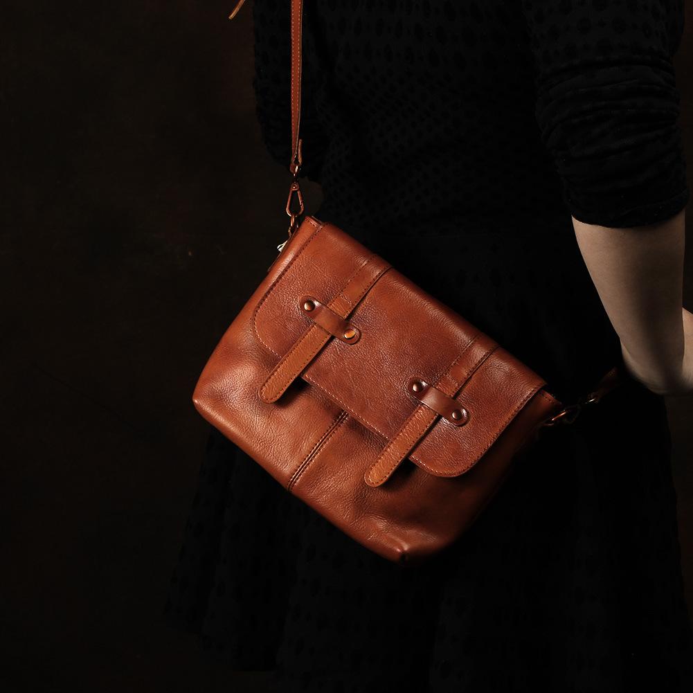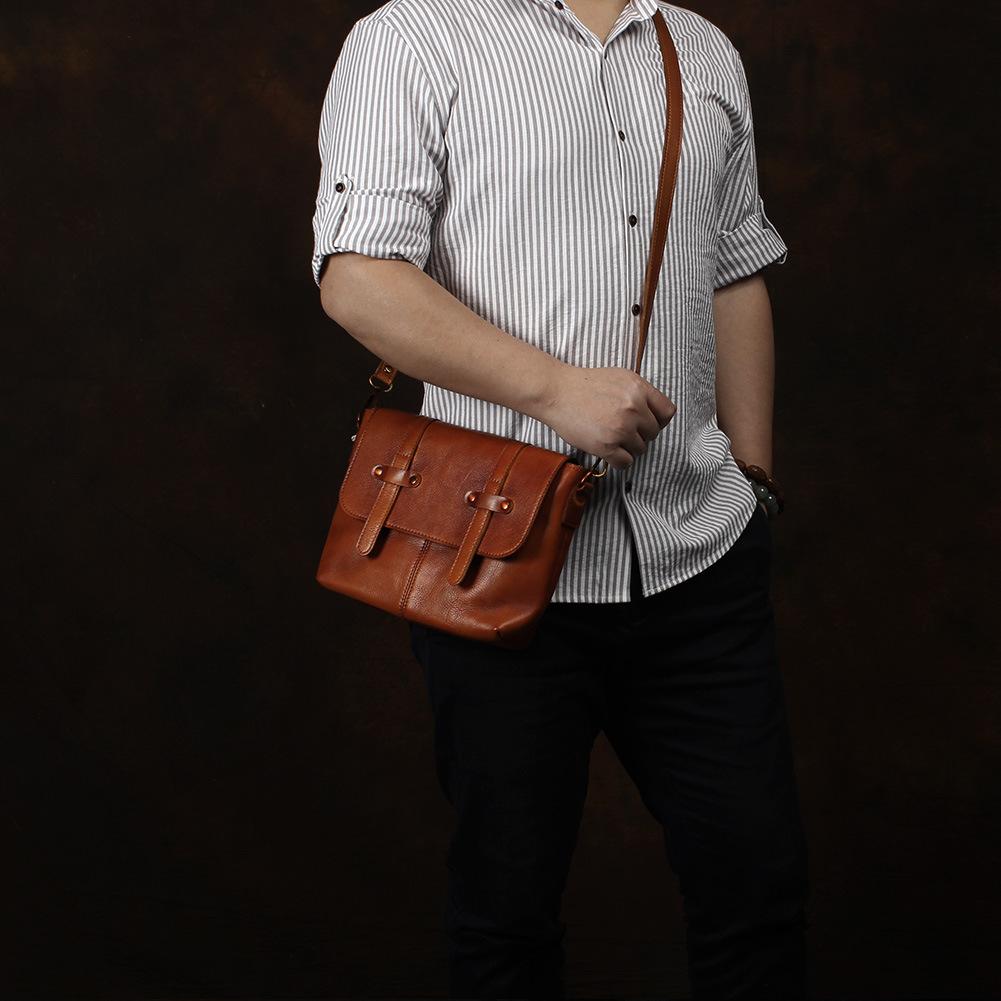 Style: Vintage Brown Leather Men's Side Bag Messenger Bag Brown Courier Bag For Men
