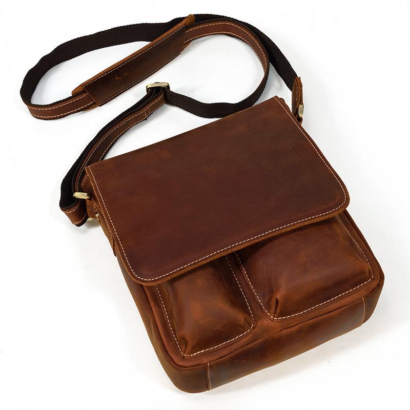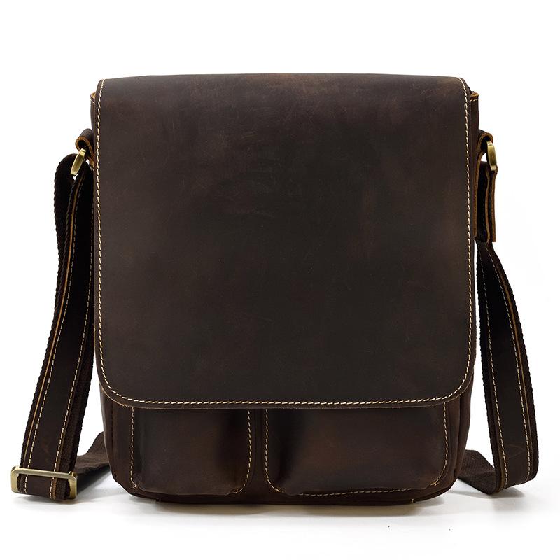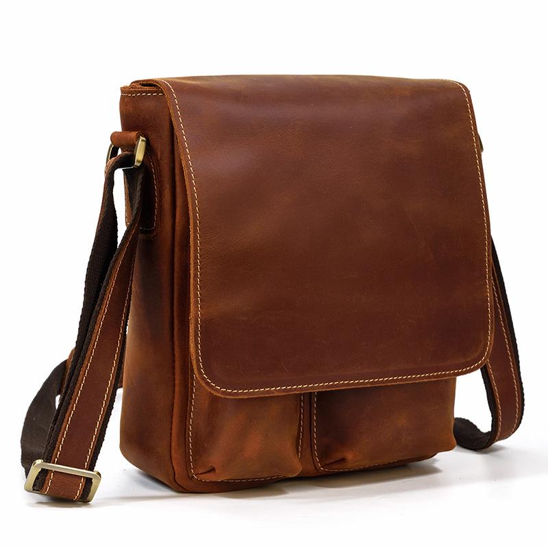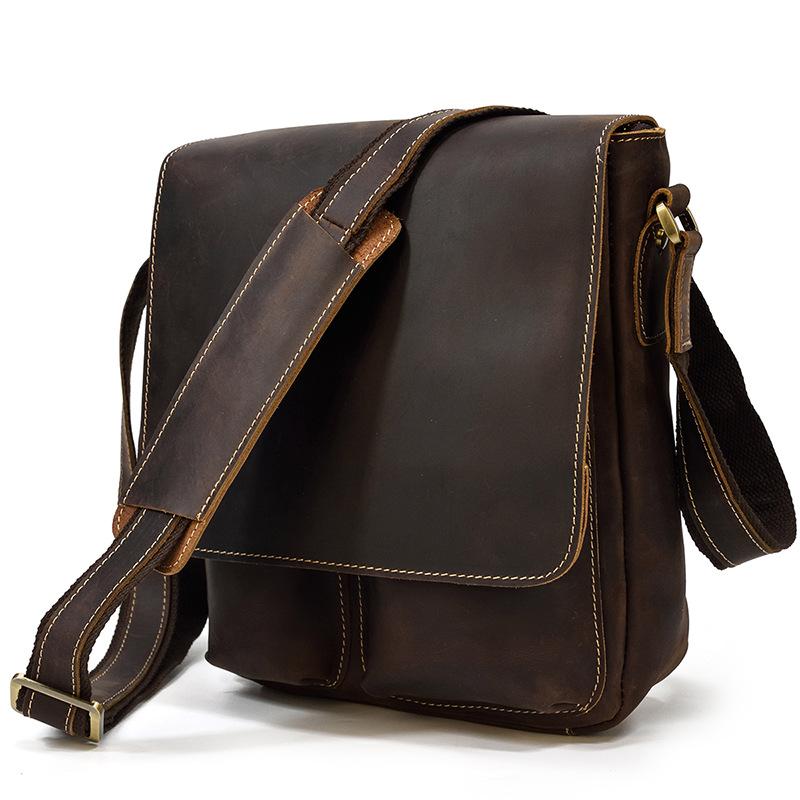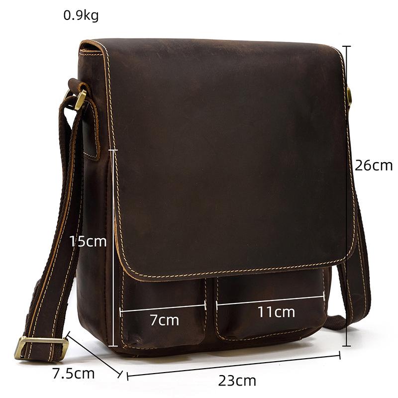 Style: Cool Brown LEATHER MENS 10 inches Vertical iPAD BAG COURIER BAG MESSENGER BAG FOR MEN