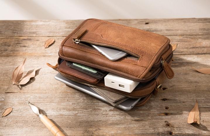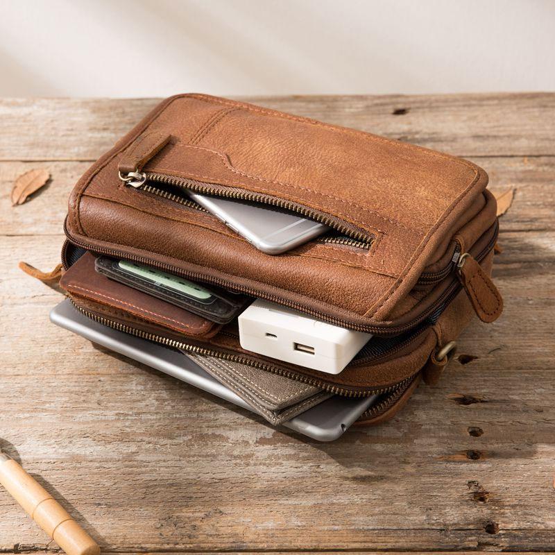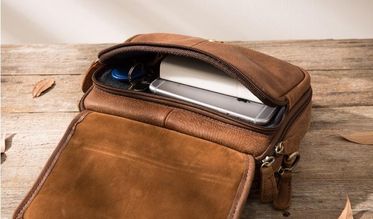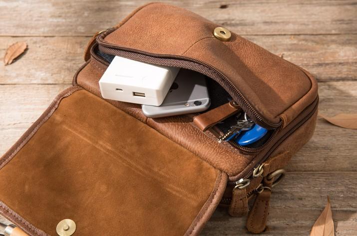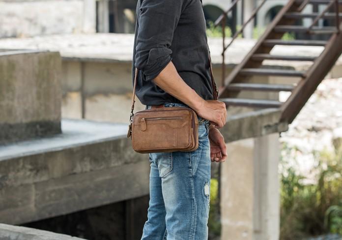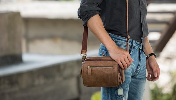 Design: Cool Leather Mens Small Messenger Bags Shoulder Bag for Men