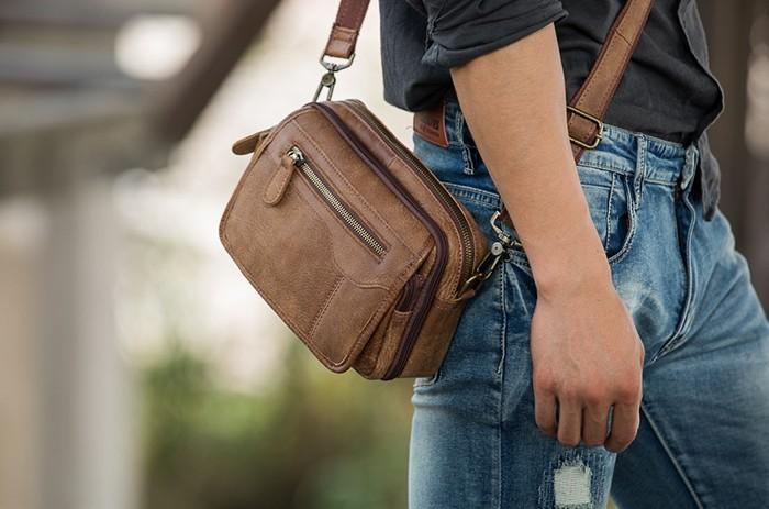 Style: Cool Leather Mens Small Messenger Bags Shoulder Bag for Men