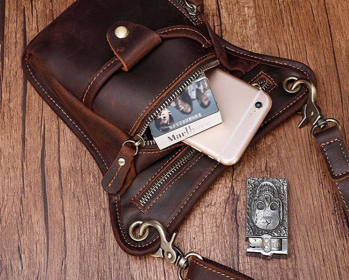 Design: Cool Leather Small Messenger Bags Vintage CrossBody Bag Shoulder Bag For Men