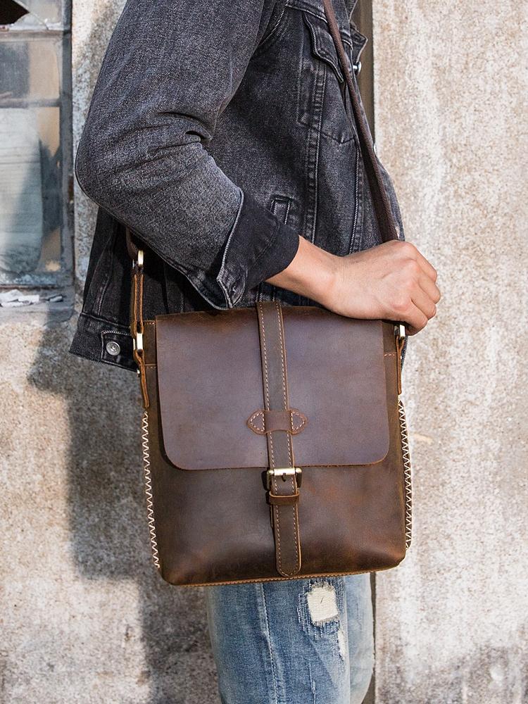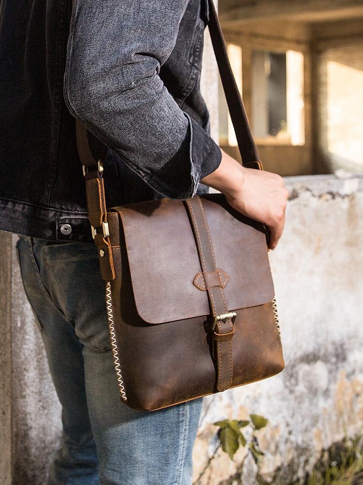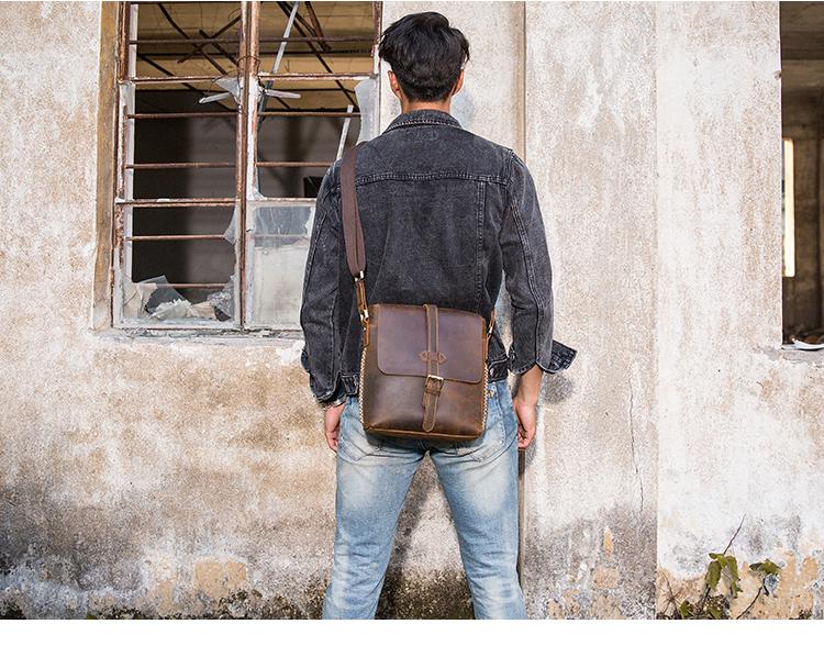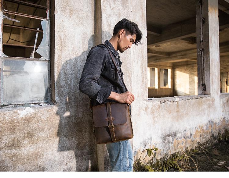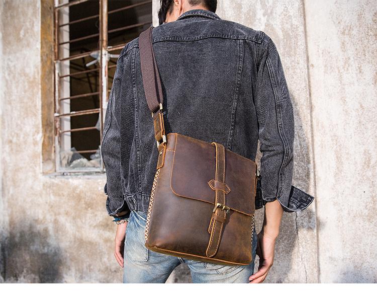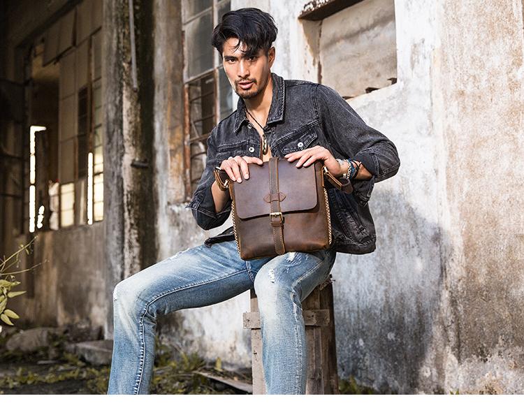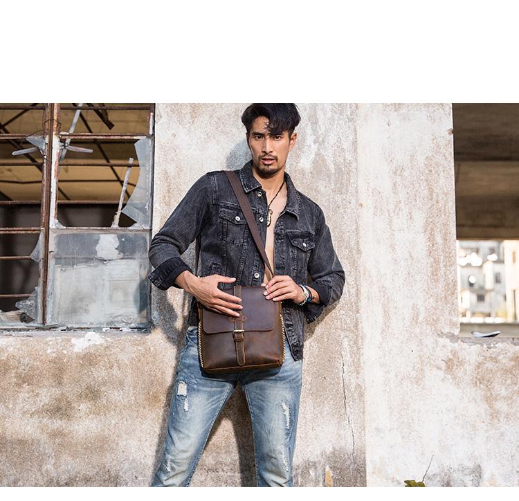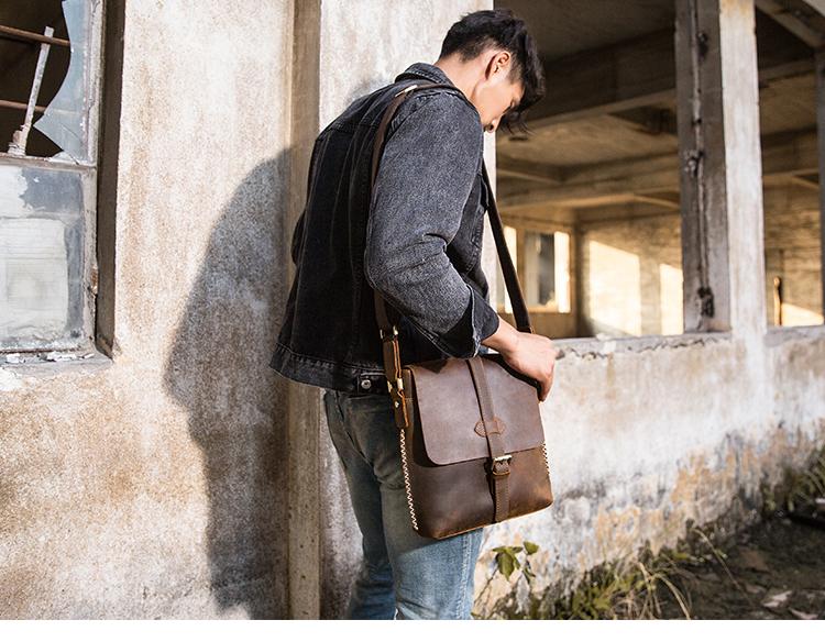 Design: Dark Brown Casual Leather Mens 10 inches Side Bag Postman Bag Black Messenger Bag Courier Bag for Men