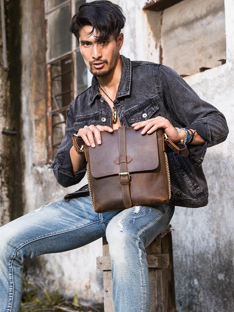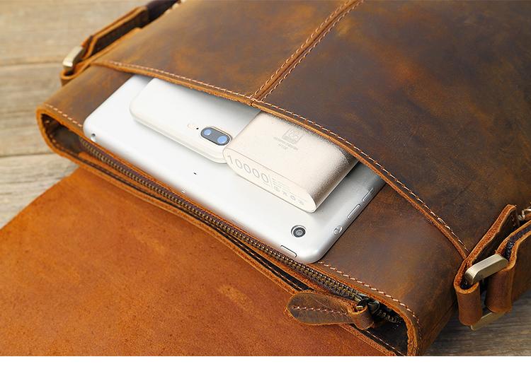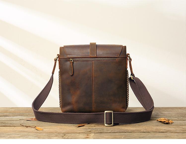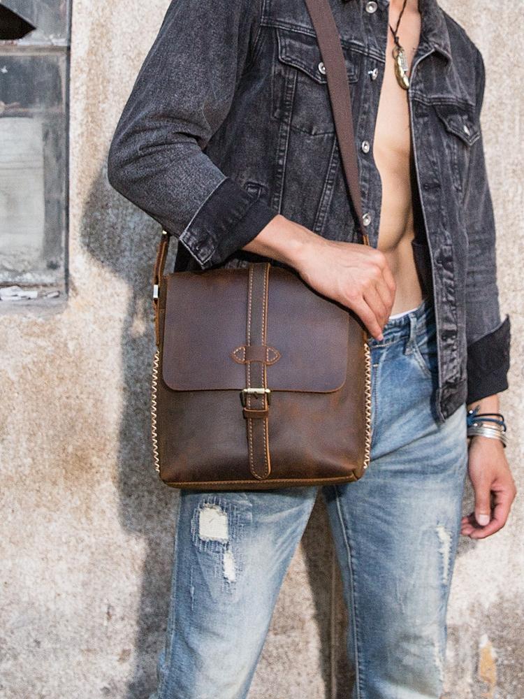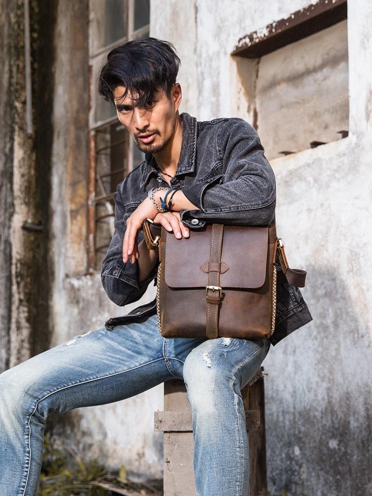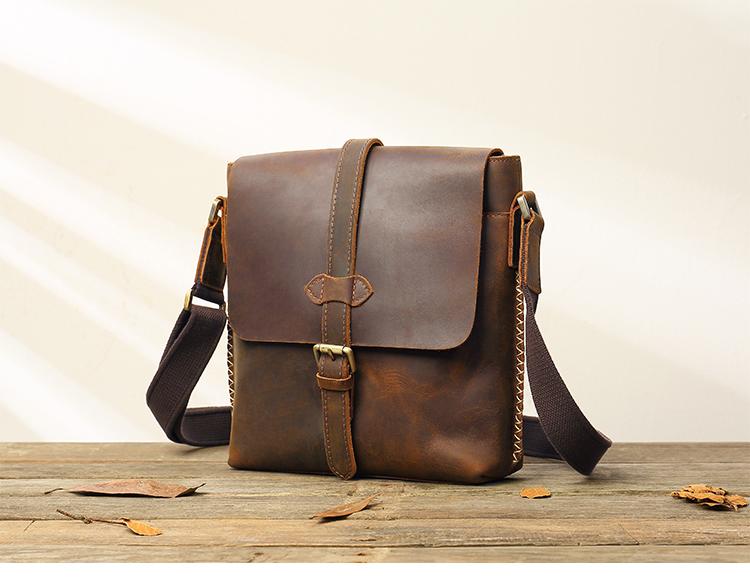 Design: Dark Brown Casual Leather Mens 10 inches Side Bag Postman Bag Black Messenger Bag Courier Bag for Men