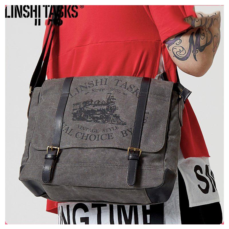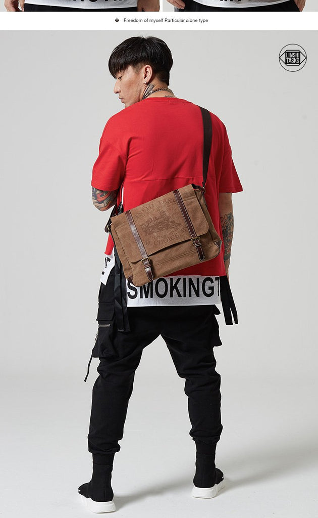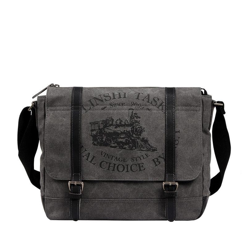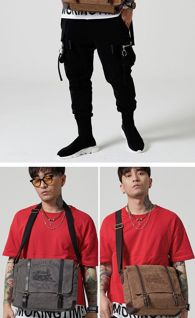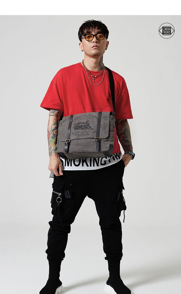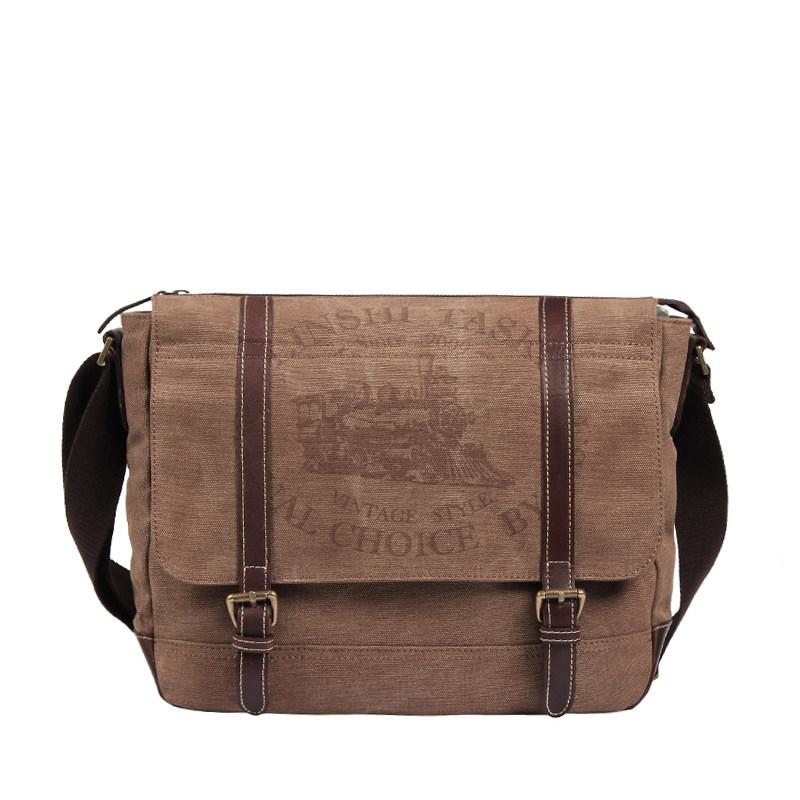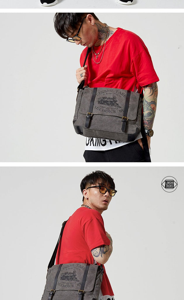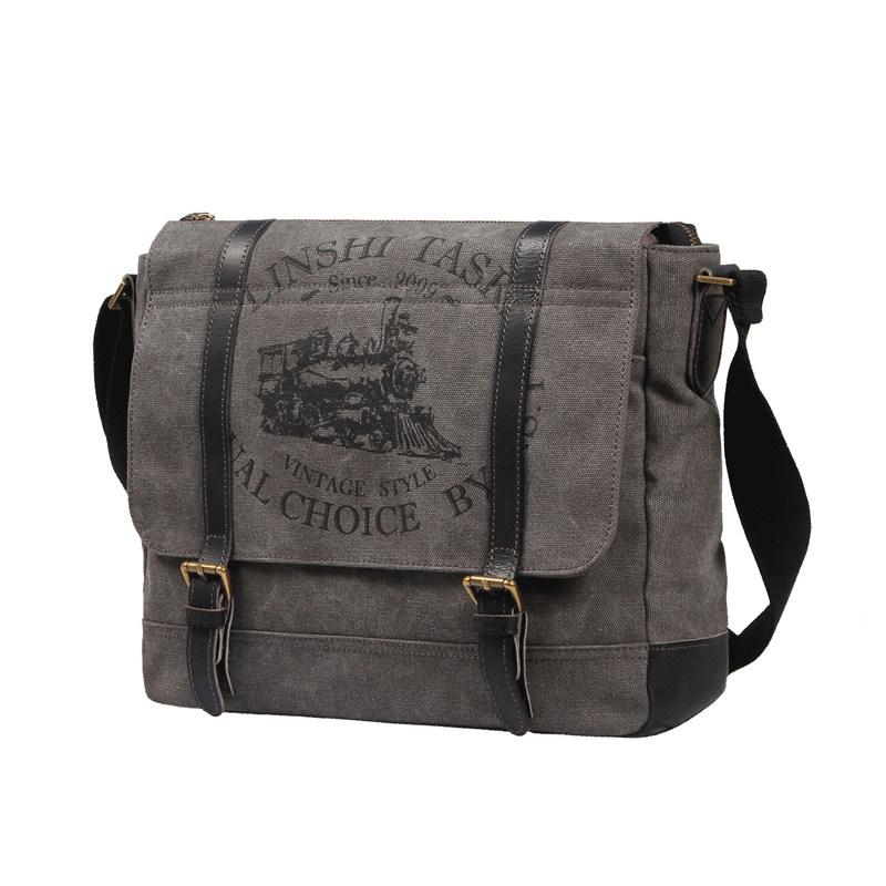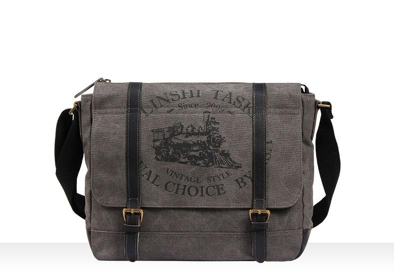 Design: Fashion Waxed Canvas Leather Mens Gray Side Bag Small Messenger Bags Brown Waxed Canvas Courier Bag for Men