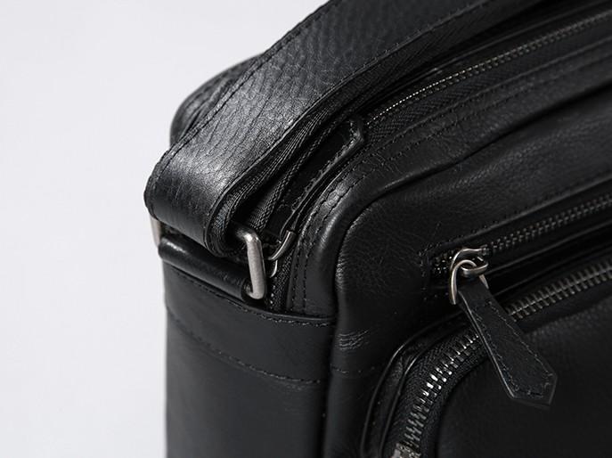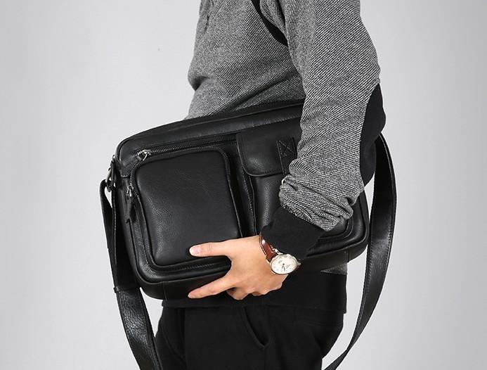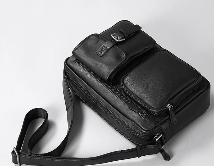 Genuine Leather Mens Cool Black Small Shoulder Bag Messenger Bag Bike Bag Cycling Bag for men