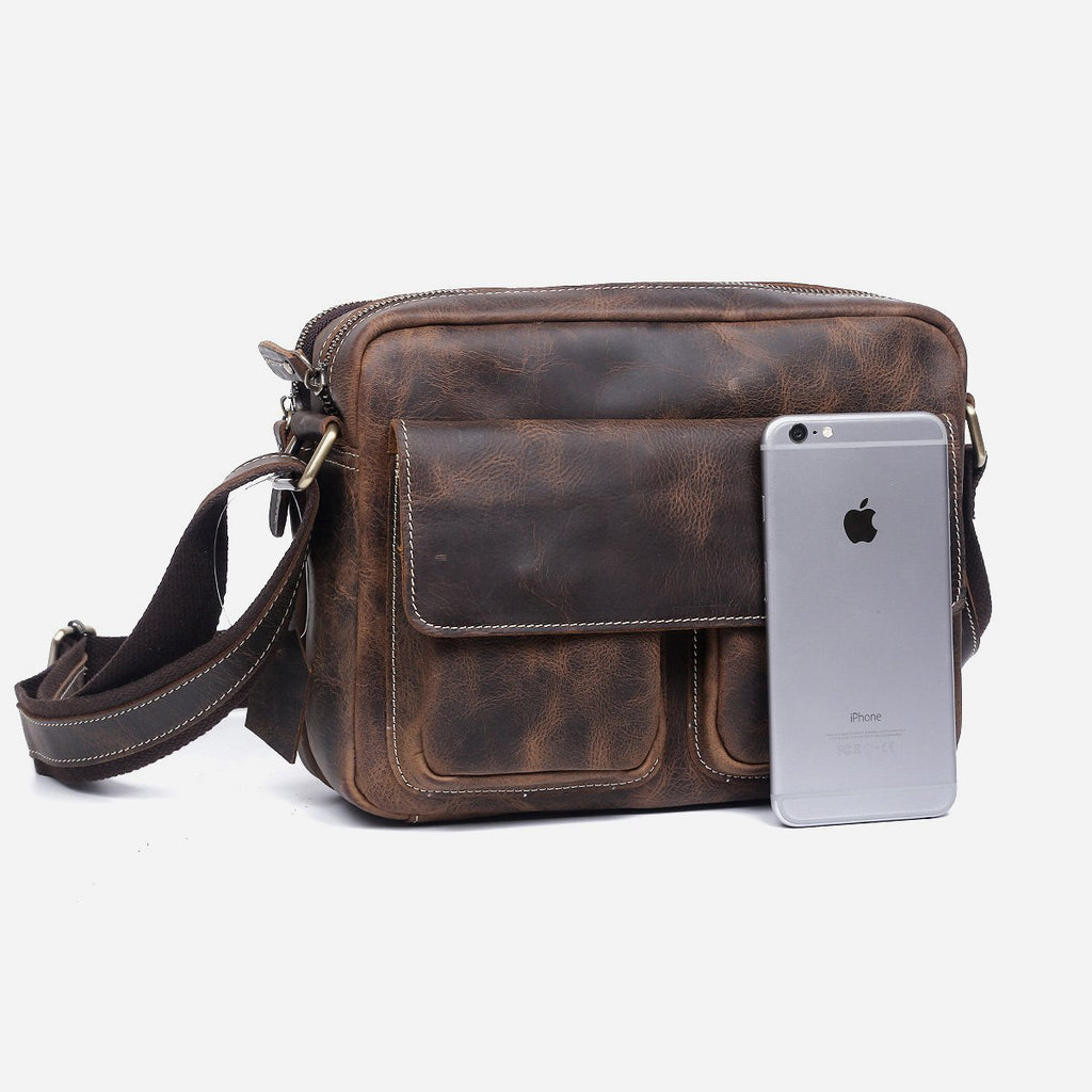 Style: Genuine Leather Mens Cool Messenger Bag Chest Bag Bike Bag Cycling Bag for men