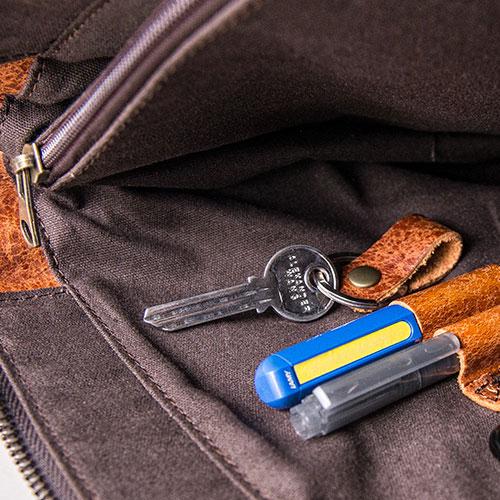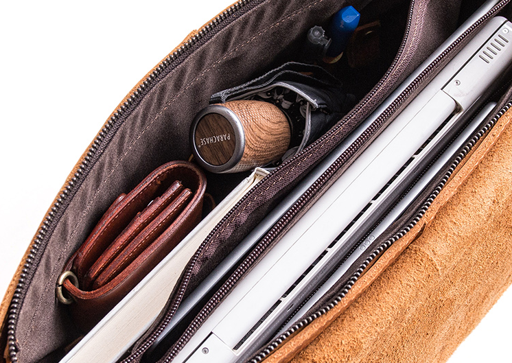 Slots: 1 zipper slot, 1 laptop slot, 1 book slot, 3 wallet slots, 1 phone slot