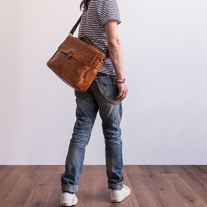 Design: Genuine Leather Mens Cool Messenger Bag Work Bag Satchel Bag Briefcase Bag for men