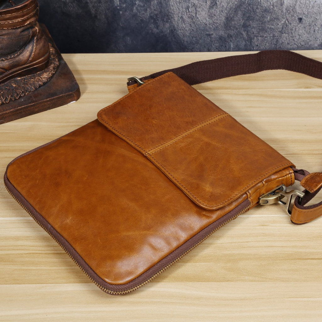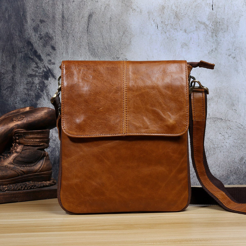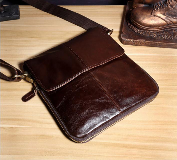 Design: Genuine Leather Mens Cool Small Messenger Bag Square Bag Chest Bag Bike Bag Cycling Bag for men