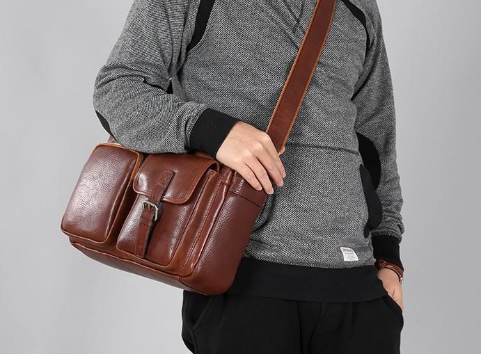 Style: Genuine Leather Mens Cool Shoulder Bag Messenger Bag Chest Bag Bike Bag Cycling Bag for men