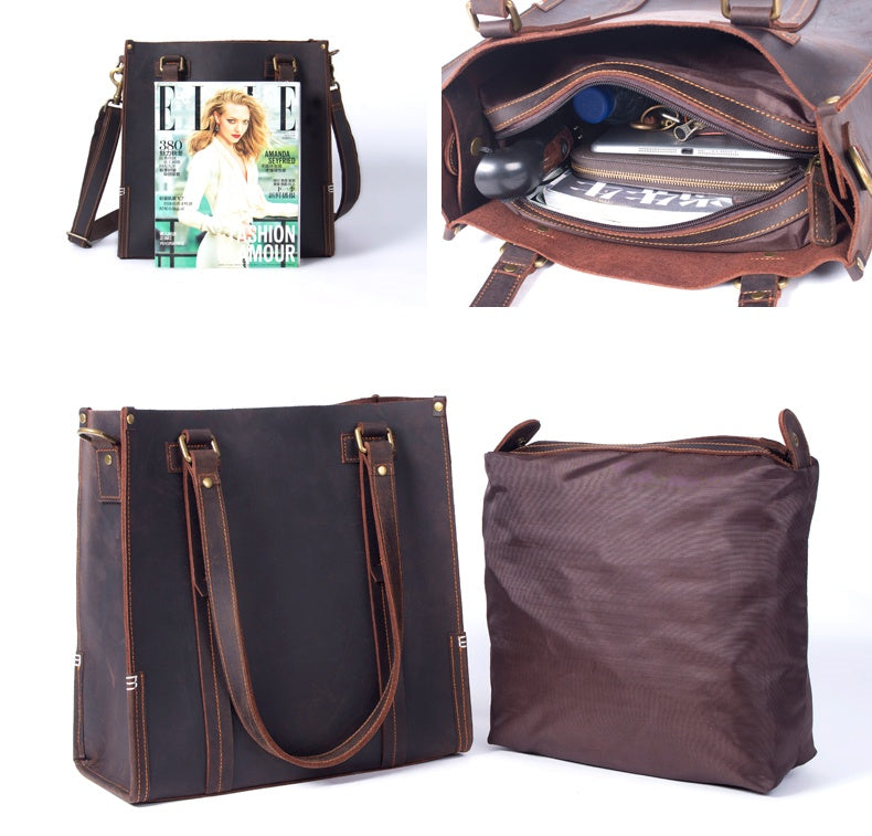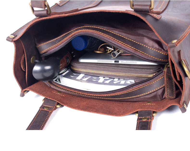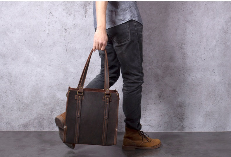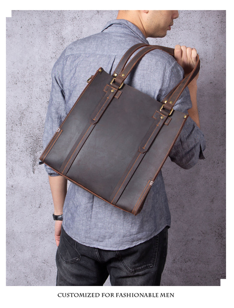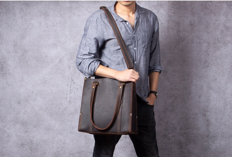 Style: Leather Tote Bag on Shoulder Mens Leather Mens Tote Bag Leather Tote Bag for Men Cool Mens Leather Tote Bag