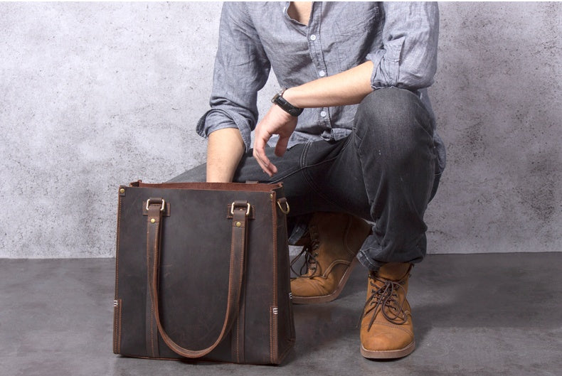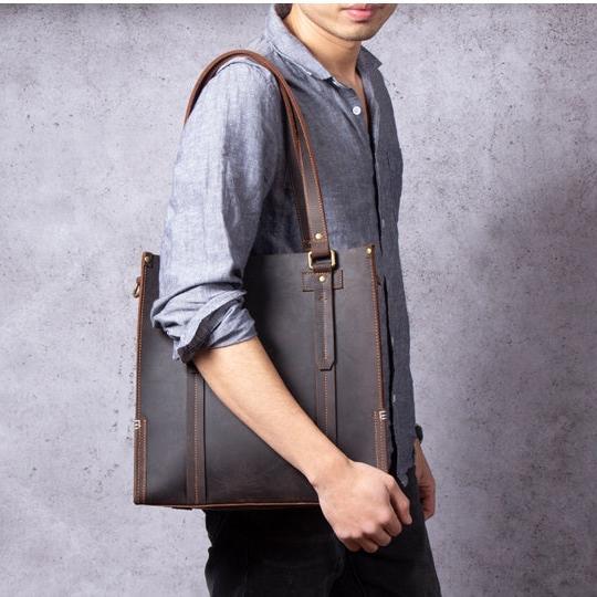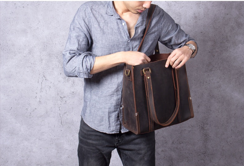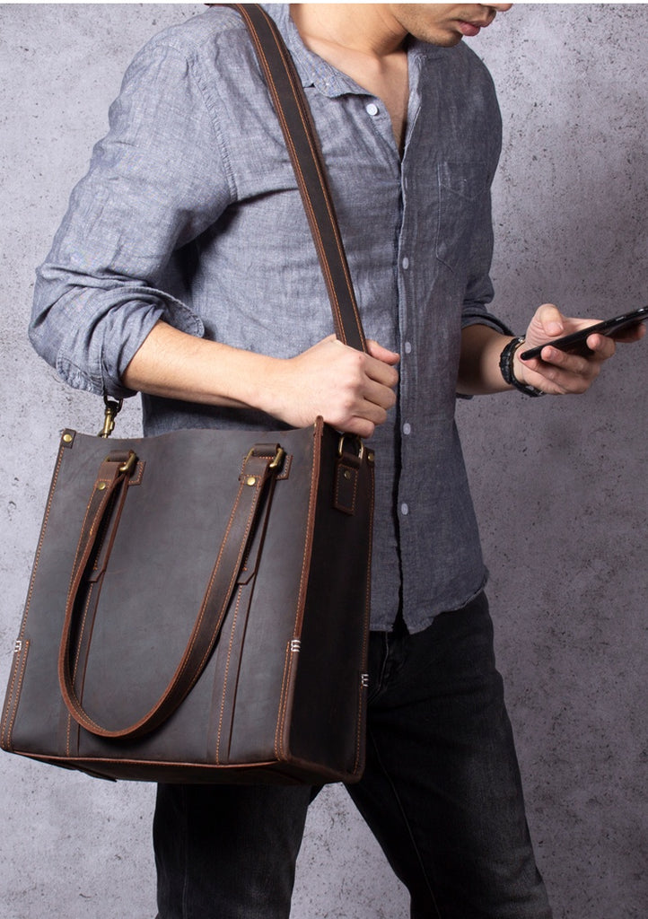Leather Tote Bag on Shoulder Mens Leather Mens Tote Bag Leather Tote Bag for Men Cool Mens Leather Tote Bag