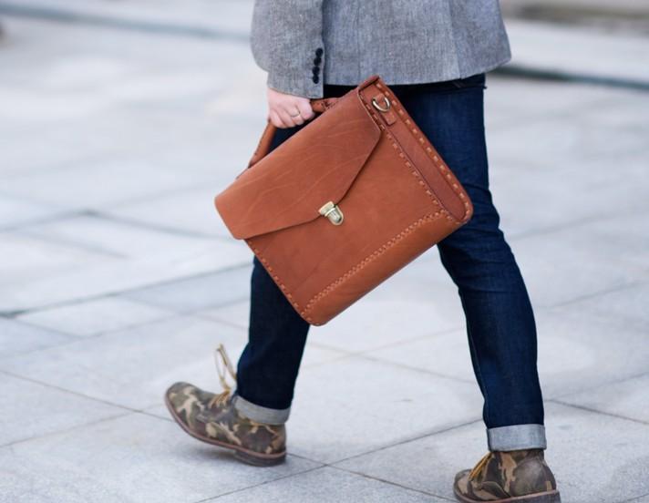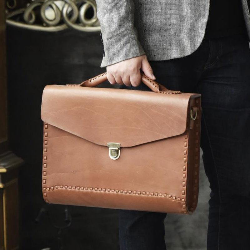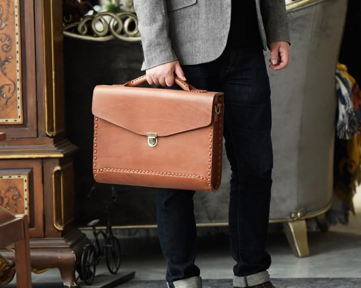 Design: Handmade Leather Mens Cool Messenger Bag Briefcase Work Bag Business Bag for men
