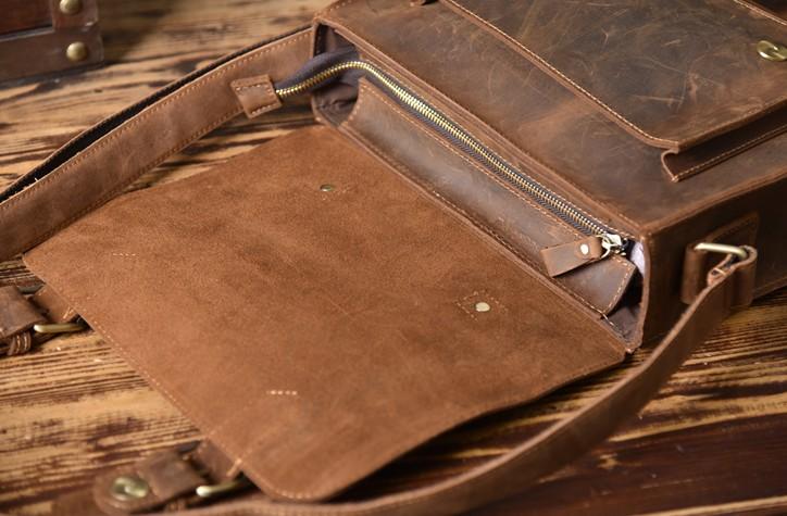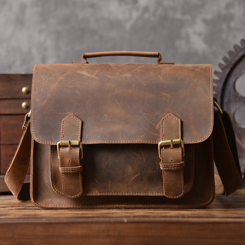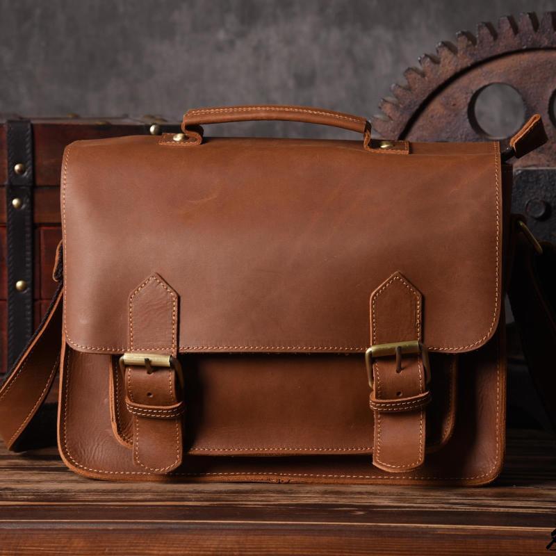 Handmade Leather Mens Cool Messenger Bag Briefcase Work Bag Business Bag for men