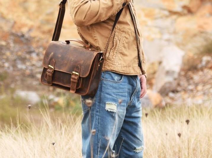 Design: Handmade Leather Mens Cool Messenger Bag Briefcase Work Bag Business Bag for men