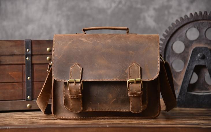 Style: Handmade Leather Mens Cool Messenger Bag Briefcase Work Bag Business Bag for men