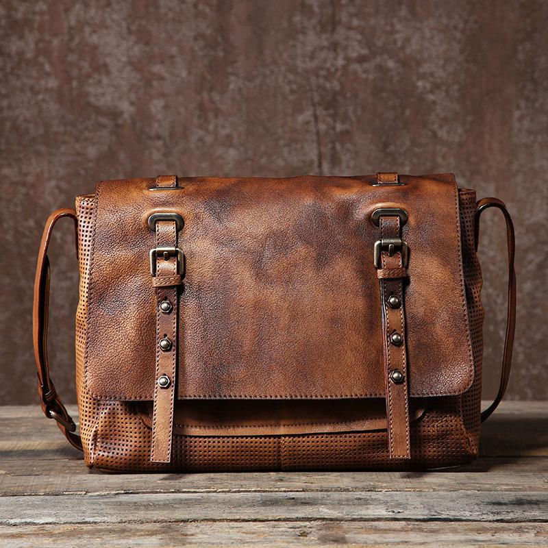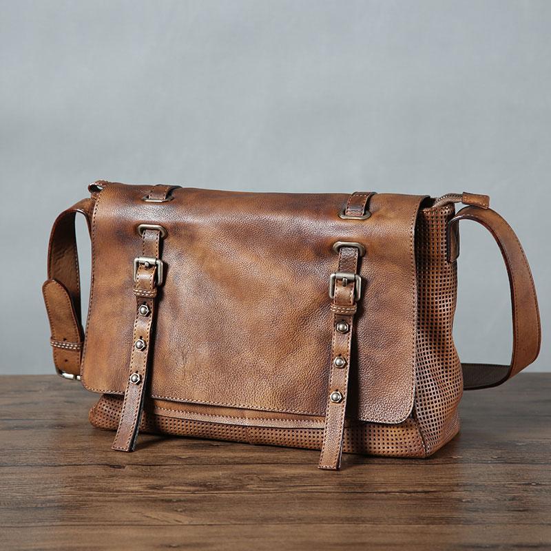 Style: Handmade Leather Mens Cool Shoulder Bag Messenger Bag Chest Bag Bike Bag Cycling Bag for men